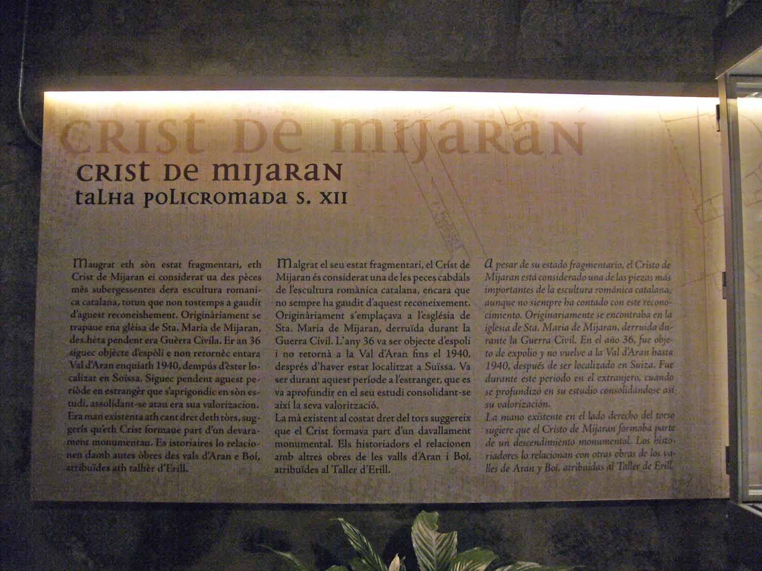 També hi ha l'altar major gòtic, atribuït per alguns a Pere Despallargues (s. XV), unes pintures murals renaixentistes, semblants a les d'Arties, i, sobretot, la talla del Crist de Mig-Aran, una excepcional talla procedent de l'antiga església de Santa Maria de Mig-Aran, un bust de dimensions naturals, que devia formar part d'un antic davallament romànic, que sembla que sortí de l'important taller d'Erill-la-Vall, a la Vall de Boí (ss. XII-XIII).