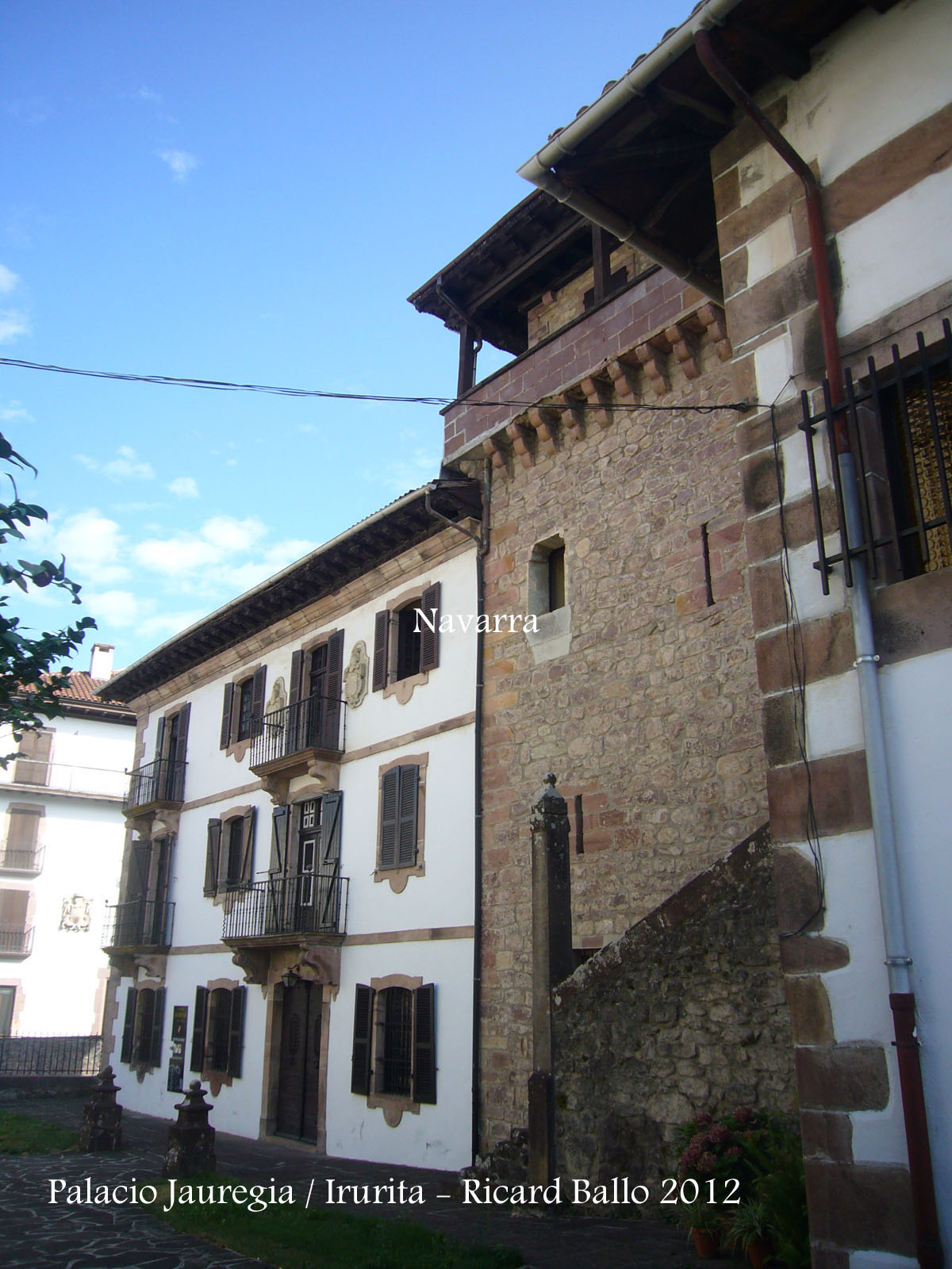 En Irurita, el visitante se encuentra el Palacio Jauregia, también conocido como Jauregizuria. Se trata de uno de los numerosos palacios "Cabo de armería" construidos en el reino de Navarra entre finales del S. XIV y primeros del S. XV y ampliado en el S. XVIII con la construcción de un pequeño palacio barroco. Está edificado íntegramente en piedra y conserva varias ventanas originales. En su interior se puede apreciar uno de los laterales de la torre, que quedó escondido en parte al construir el edificio contiguo. Hoy en día está abierto a las visitas.