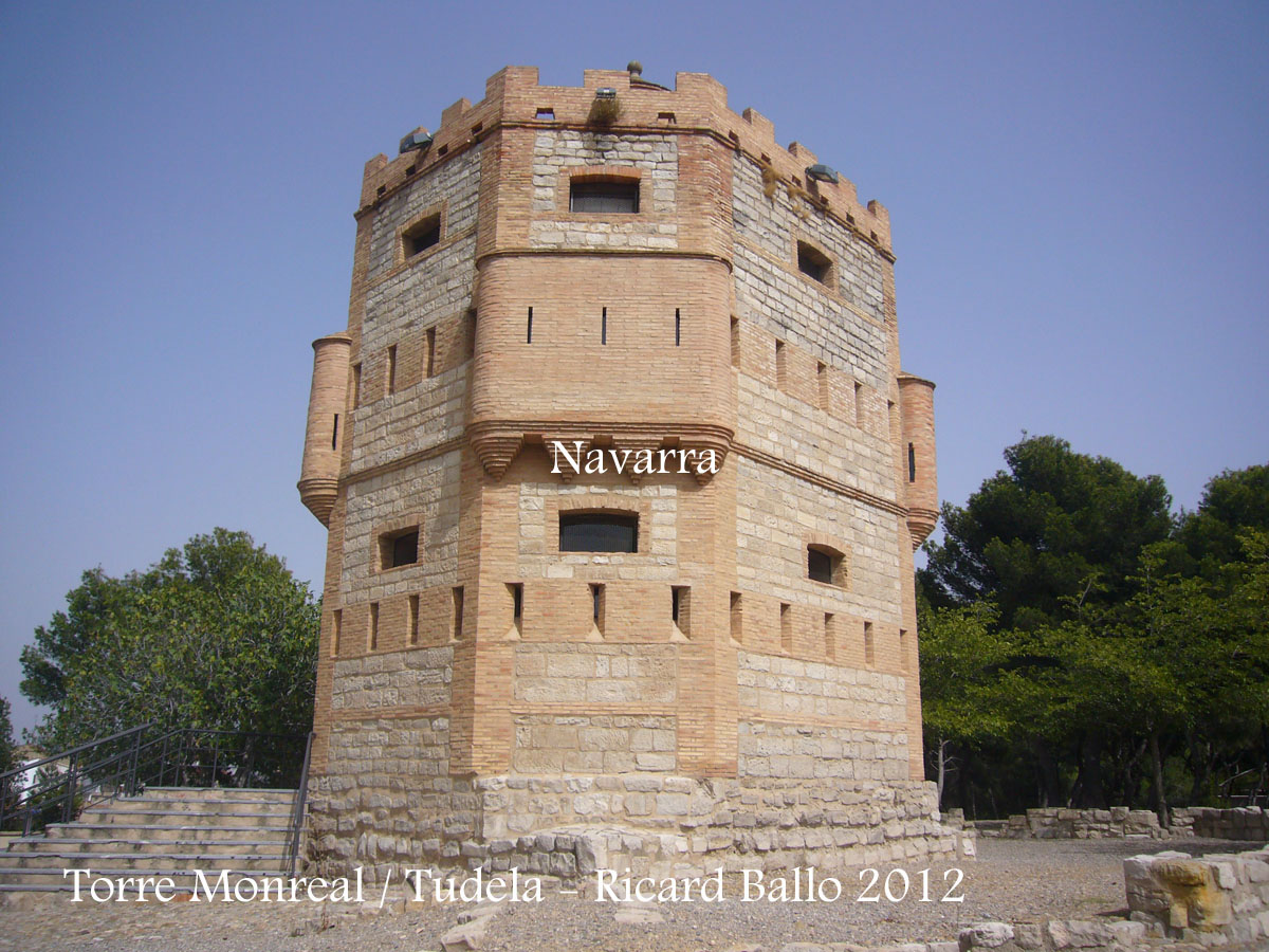 La torre Monreal es un edificio defensivo erigido en el siglo XIII sobre una atalaya al suroeste de Tudela con el fin de vigilar el territorio, aunque su aspecto actual responde a posteriores reconstrucciones. Se trata de un edificio hexagonal de ladrillo en el que se integra la única evidencia de la época medieval, el aljibe, un depósito subterráneo destinado a guardar agua potable procedente de la lluvia. La última reforma acometida lo ha convertido en la primera cámara oscura de Navarra y en un centro de interpretación con paneles explicativos sobre las culturas que han convivido en la capital ribera: la judía, la musulmana y la cristiana. Así, un dispositivo que gira 360 grados capta la imagen de la zona que rodea a la Torre Monreal en tiempo real y ésta es proyectada en el interior de la cámara oscura. Además, en cada sesión, que dura veinte minutos aproximadamente, se revelan secretos sobre la historia,evolución y curiosidades de Tudela.