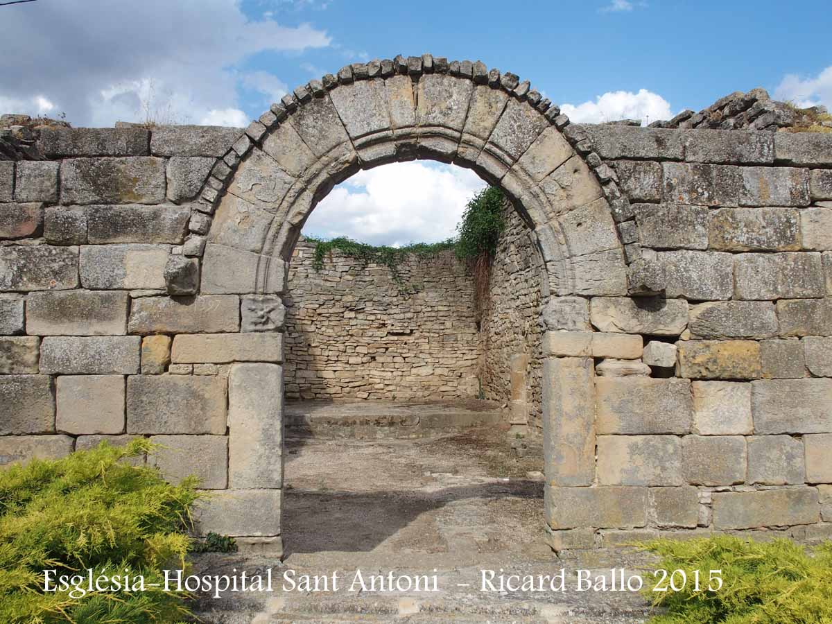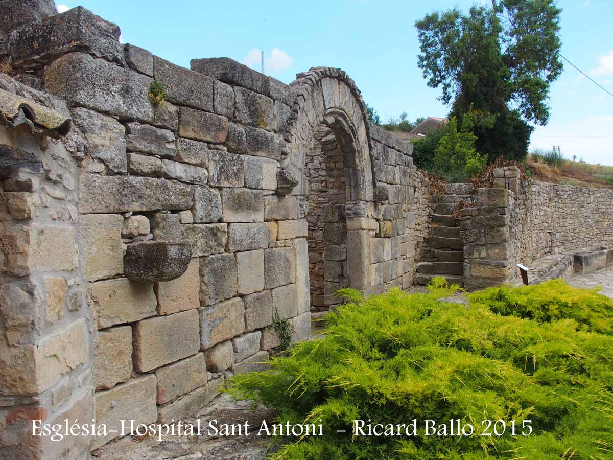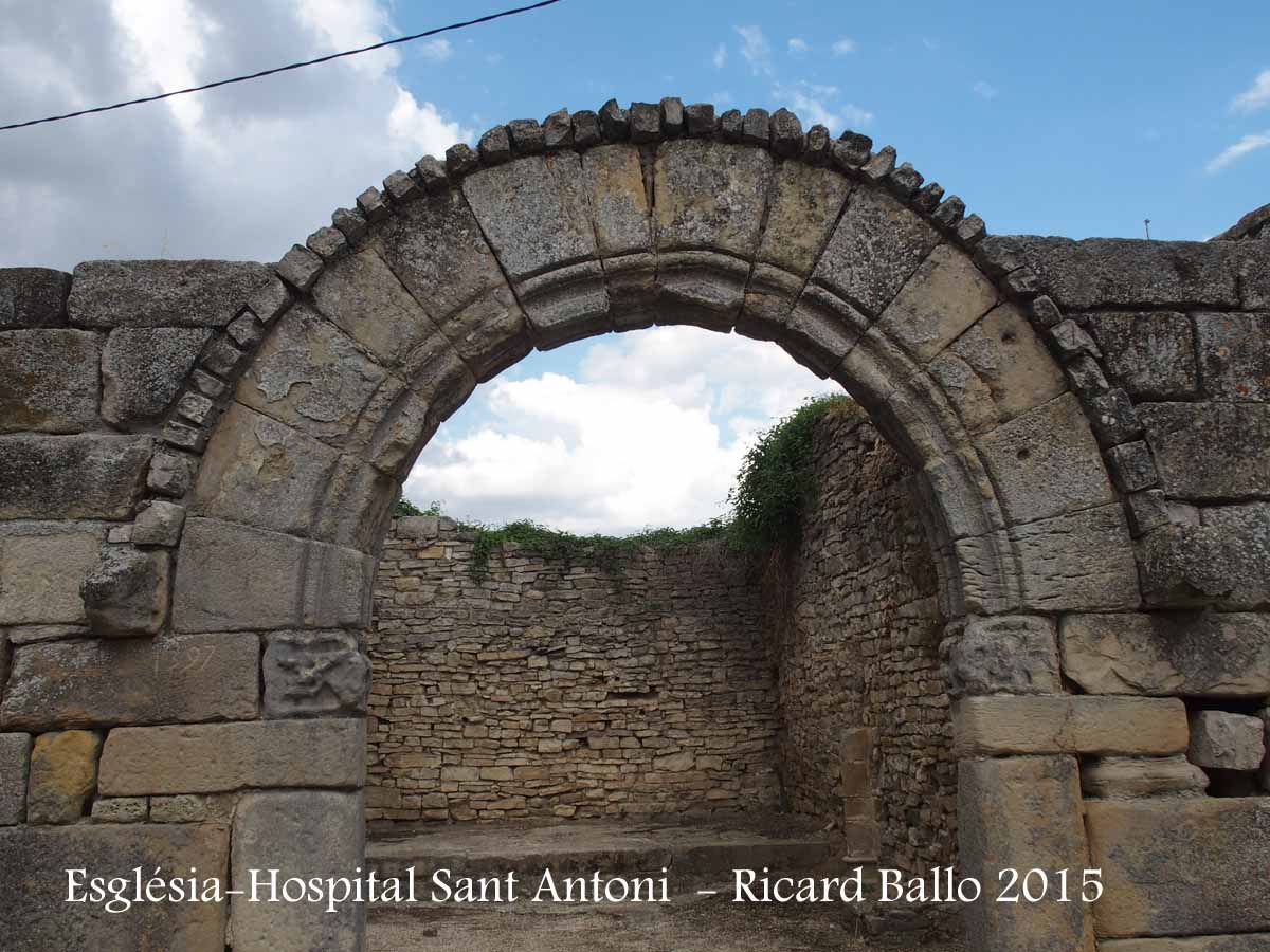Era l'església de l'antic hospital, petit edifici que feia d'hostal de peregrins, la construcció del qual va iniciar-se vers el 1387. Aquesta data fa pensar que la portada que queda en peu sigui procedent d'una construcció anterior.”