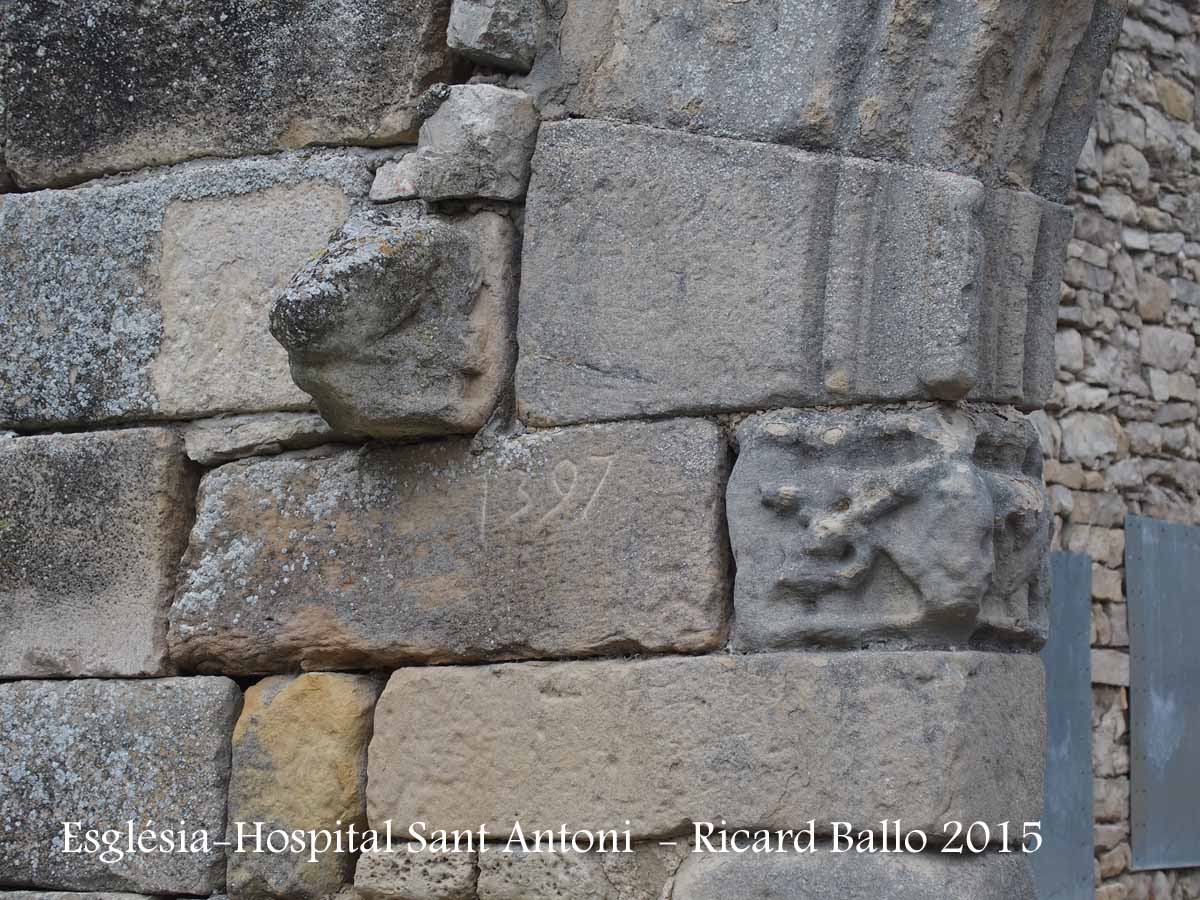 En una pedra de la façana, a l'esquerra i a un metre del terra, es conserven les restes de la inscripció "IOANI 1397/ ME INSIPIT".