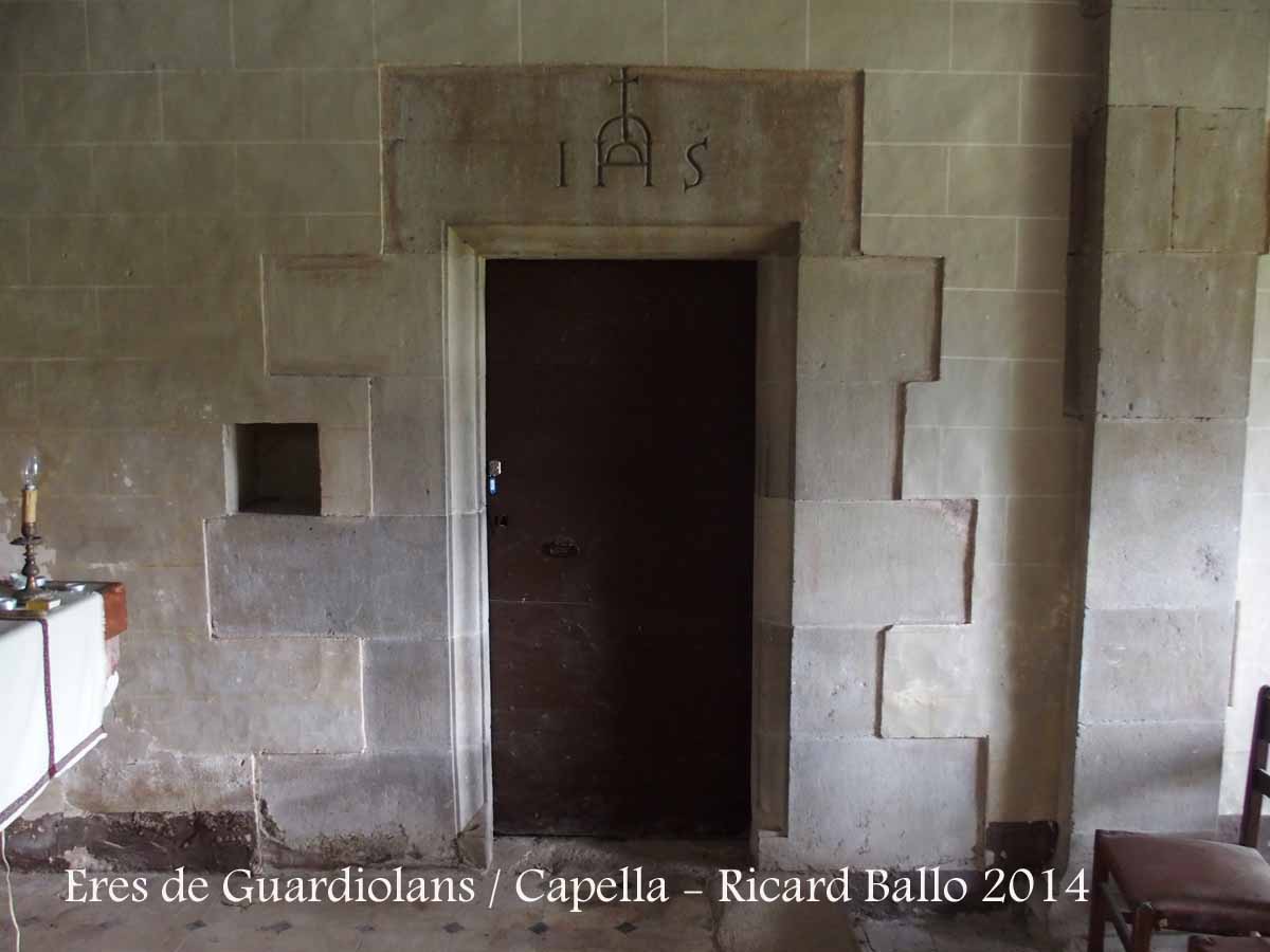Situació: Adossada a l'edificació anomenada Les Eres de Guardiolans, de la que és capella privada. En terrenys de Vilada, població i municipi del mateix nom, a la comarca del Berguedà (Barcelona).