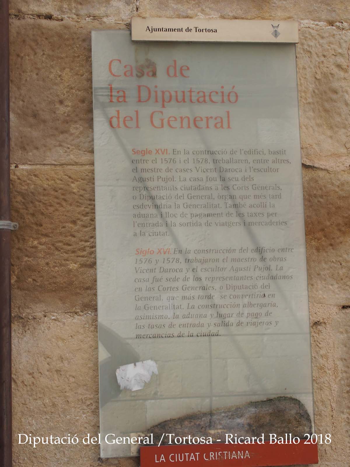 Aquest casal fou seu de la Generalitat a Tortosa. Construït possiblement en el s. XIV.