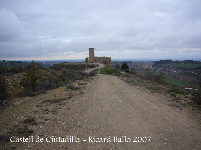 Un altre itinerari possible, i potser més aconsellable, és circulant per la carretera L-234 (Ciutadilla – Passanant : veure mapa Google) entrarem a Ciutadilla per una desviació indicada per anar al castell. A continuació girarem a la dreta i continuarem circulant pel carrer del Castell, un camí de terra, que ens conduirà a una planura, passarem pel costat d’un dipòsit i ens dirigirem cal al castell, perfectament visible i on podrem aparcar còmodament al davant mateix.