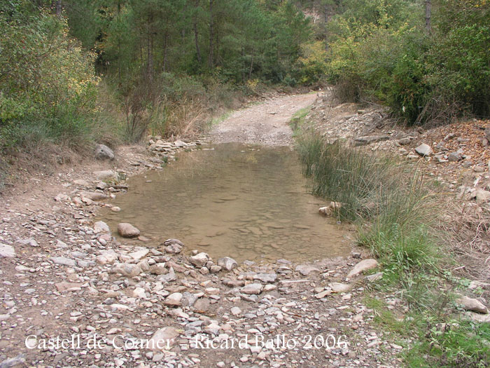 Hem trigat mes o menys tres quarts d'hora per arribar al castell, caminant sense preses, tot xino xano. Efectivament, el camí és travessat per varies rieres, que avui formaven bassals d'aigua, no sent gaire aconsellable travessar-les amb un vehicle convencional.