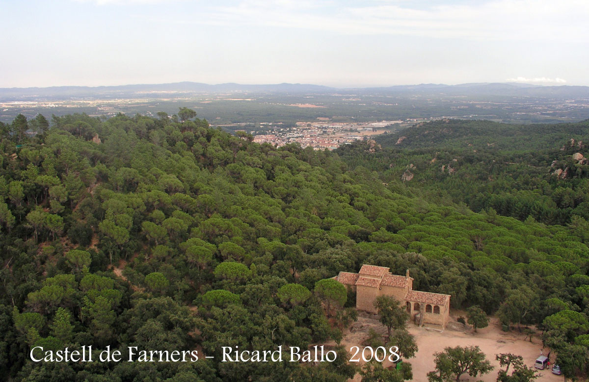 El Castell de Farners es troba elevat uns 50 metres sobre el pla de Farners i l' Ermita, construït sobre la mateixa roca, en un turonet.