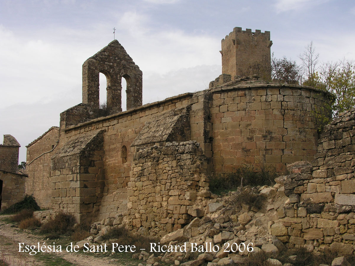 Al costat hi ha restes de l'església de Sant Pere.