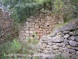 Al poc, entre els arbres, a l’esquerra trobarem les restes de l’antic poble de Prenafeta, abandonat al segle XIV, a conseqüència de la pesta.