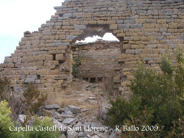 A continuació, tres vistes de les restes de la capella del castell: