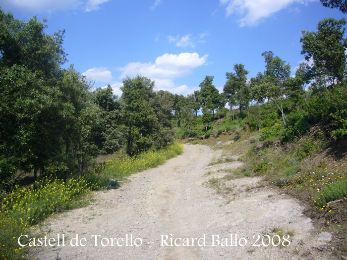 Al cap de molt poc, a la dreta veurem un cartell petit, de color verd, de senderisme (PR-C 45-1 variant – Camí del sot gran), indicant la direcció per anar al castell de Torelló.