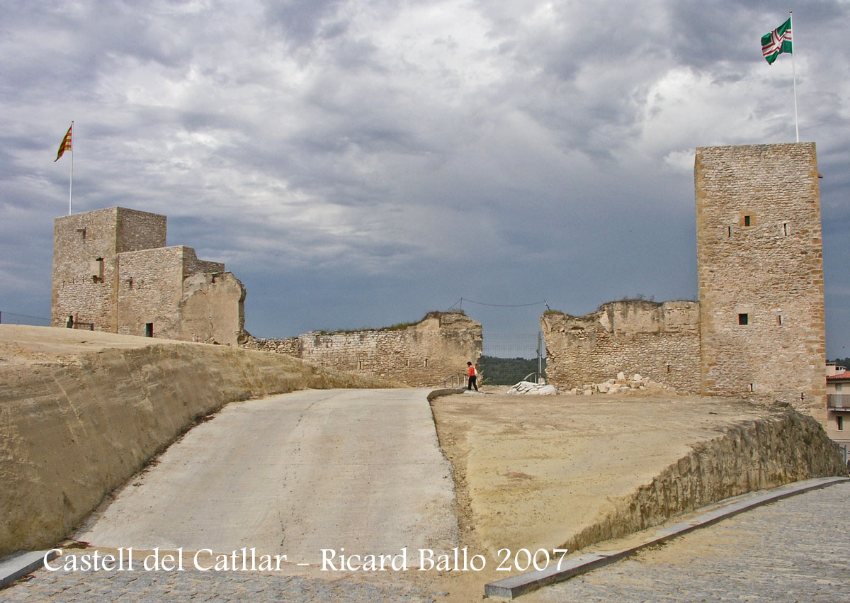 En el cas del castell del Catllar, únicament la façana principal presenta el seus extrems nord i sud protegits per dues imponents torres rectangulars. Segurament això és així pel fet que la resta del perímetre de tancament se situa en una posició prou elevada i inaccessible que fa innecessària l'existència d'un reforçament de la defensa. També per aquest mateix motiu només la façana principal i el tancament sud foren protegits per un impressionant fossat excavat en la roca natural.