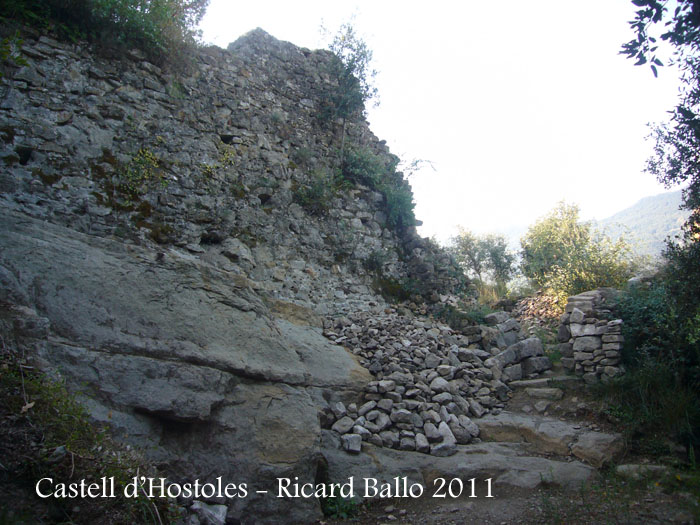 Altres: (*) Davant per davant d’aquest lloc, a l’altra banda de la carretera, si ens hi fixem, veurem un pal amb un cartell “oficial” assenyalant aquesta direcció per anar al castell d’Hostoles. Si després decidim investigar-ho, veurem que des d’aquest cartell, baixant, al cap de pocs metres arribarem al lloc pel qual antigament circulava el tren d’Olot - Girona, espai convertit ara en via verda, de la qual us facilitaran complerta informació, si ho voleu, a l’oficina de turisme de Sant Feliu de Pallerols o a la de Les Planes d’Hostoles.