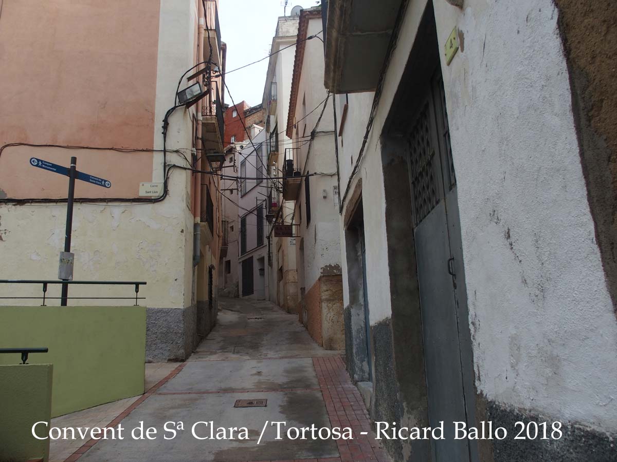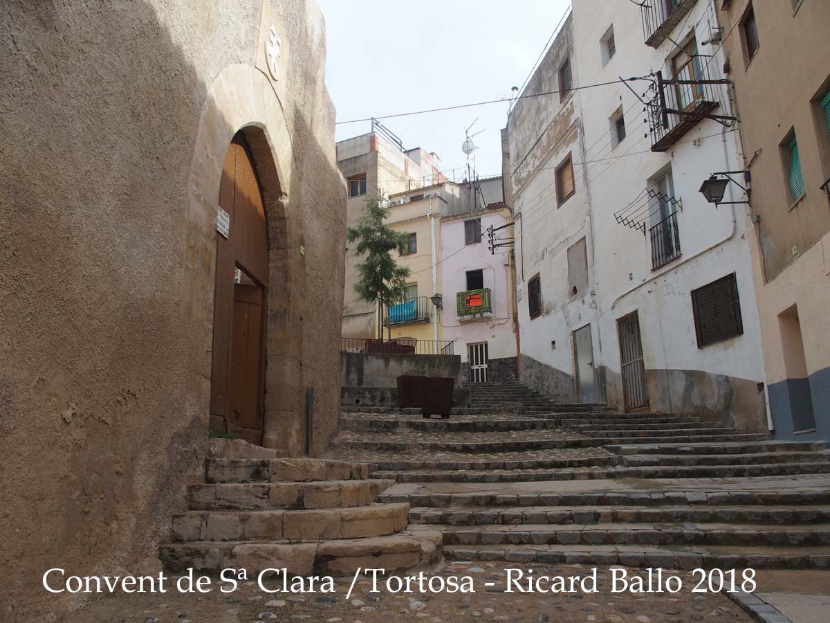 Situat a l'extrem NE del barri de Sta. Clara, vora de la muralla del s. XIV, s'accedeix a través d'un pati exterior que comunica amb l'actual església, la porteria i els locutoris.