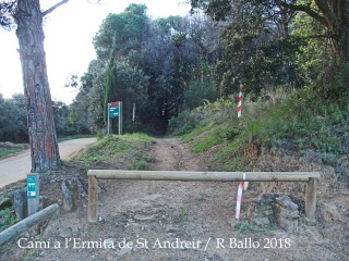 0 – Punt d’inici. Des de casa mateix, planificant la descoberta d’aquesta edificació, vàrem determinar que caldria dirigir-nos fins un punt de la carretera BV-5126, situat a 41 38 35.3 E 02 37 46.4, una cruïlla de camins (Collet de Sant Andreu).