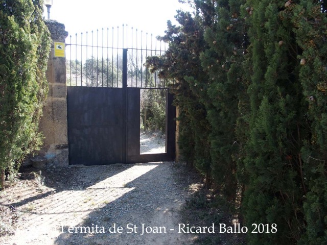 L'entrada és una porta adintellada, flanquejada a la dreta per una petita finestra i a l'esquerra, per una creu. Al seu interior hi ha un altar dedicat a St. Joan amb un gran nombre de relíquies.