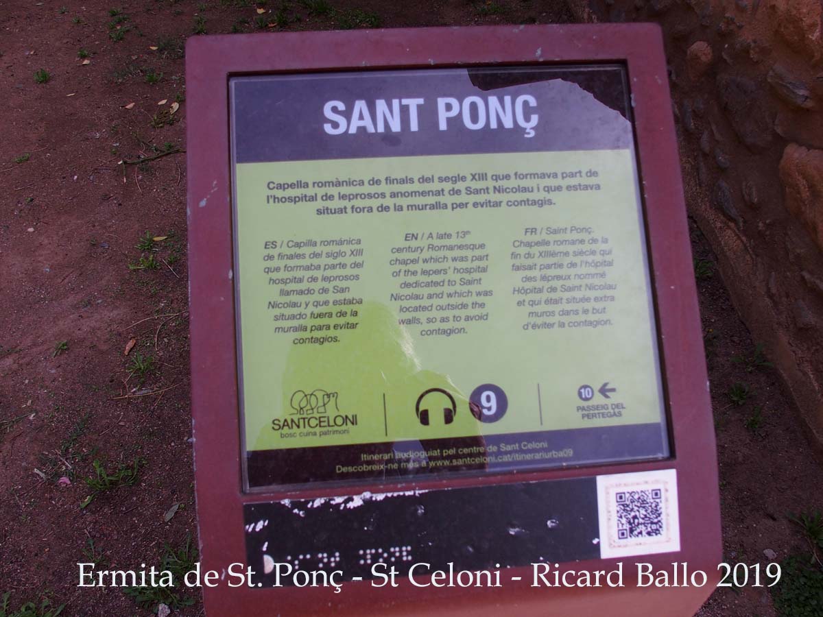 A extramurs de la vila hi havia l'hospital de malalts pobres o leprosos de Sant Nicolau de Sant Celoni, amb una petita església romànica que des del segle XIX es coneix amb el nom de Sant Ponç.