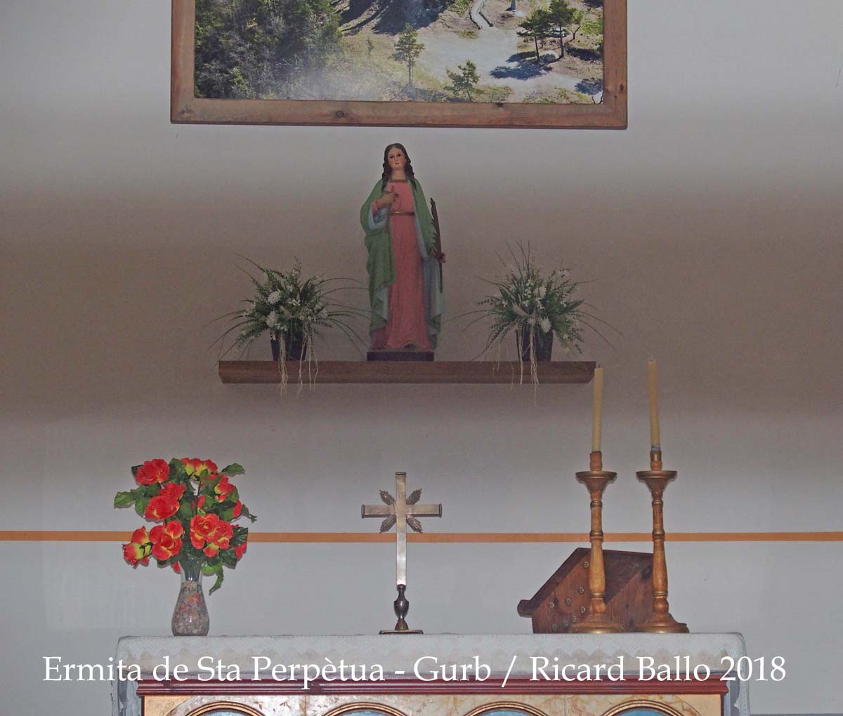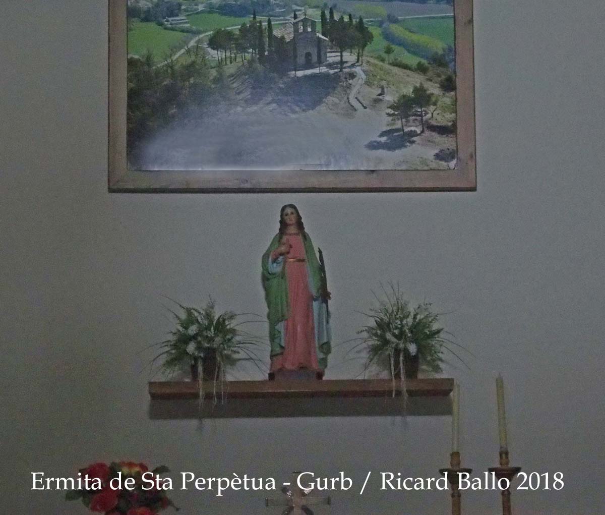 Té una sola obertura quadrada orientada a la part posterior de l'ermita i tancada amb una porta de fusta.
