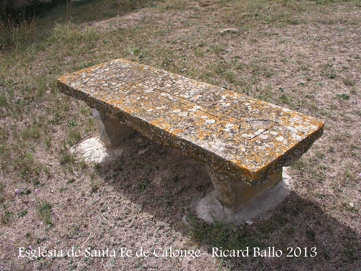 “ Es té notícia per primer cop de l'església romànica de Santa Fe de Calonge a través de l'acta de consagració de la canònica de Sant Vicenç de Cardona del 1040, en la qual l'església de Santa Fe va esdevenir domini de Cardona.