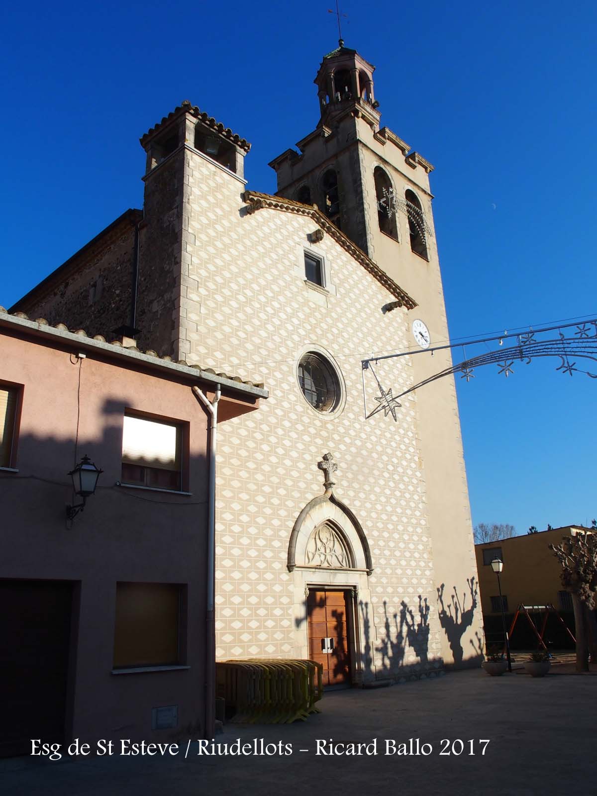 La parròquia de Sant Esteve de Riudellots de la Selva existeix des del 882. És esmentada per primera vegada en un acte de donació que el bisbe Teuter signà el 24 de novembredel 887, pel qual donava a Santa Maria de Girona i Sant Feliu diverses esglésies, entre les que hi havia la “basilicam de Rivo de Luto”. A l’any 1242 apareix com a “Rivolutlrum”. L’església primitiva de Riudellots es trobava situada entre el riu Cric i el riu Riudevilla. L’any 1430, o bé per evitar les continues inundacions, o a causa del terratrèmol de 1428, es decideix traslladar el nucli urbà i l’església a la zona actual. De l’antiga església romànica no en queda cap vestigi.