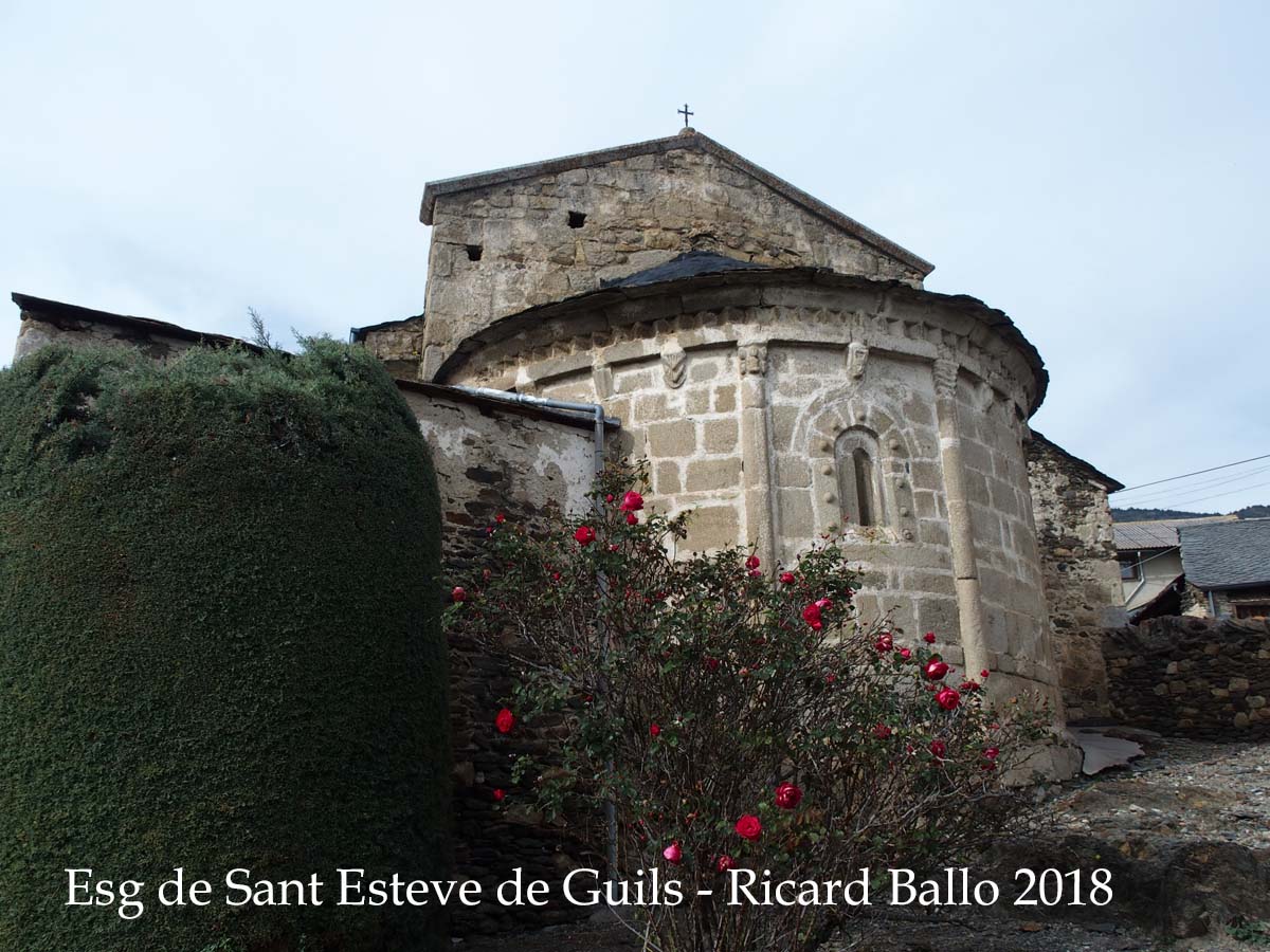 L'església de Sant Esteve de Guils fou consagrada el 1042, però l'edificació actual correspon fonamentalment a una construcció del segle XII, que a la vegada fou reformada posteriorment.”