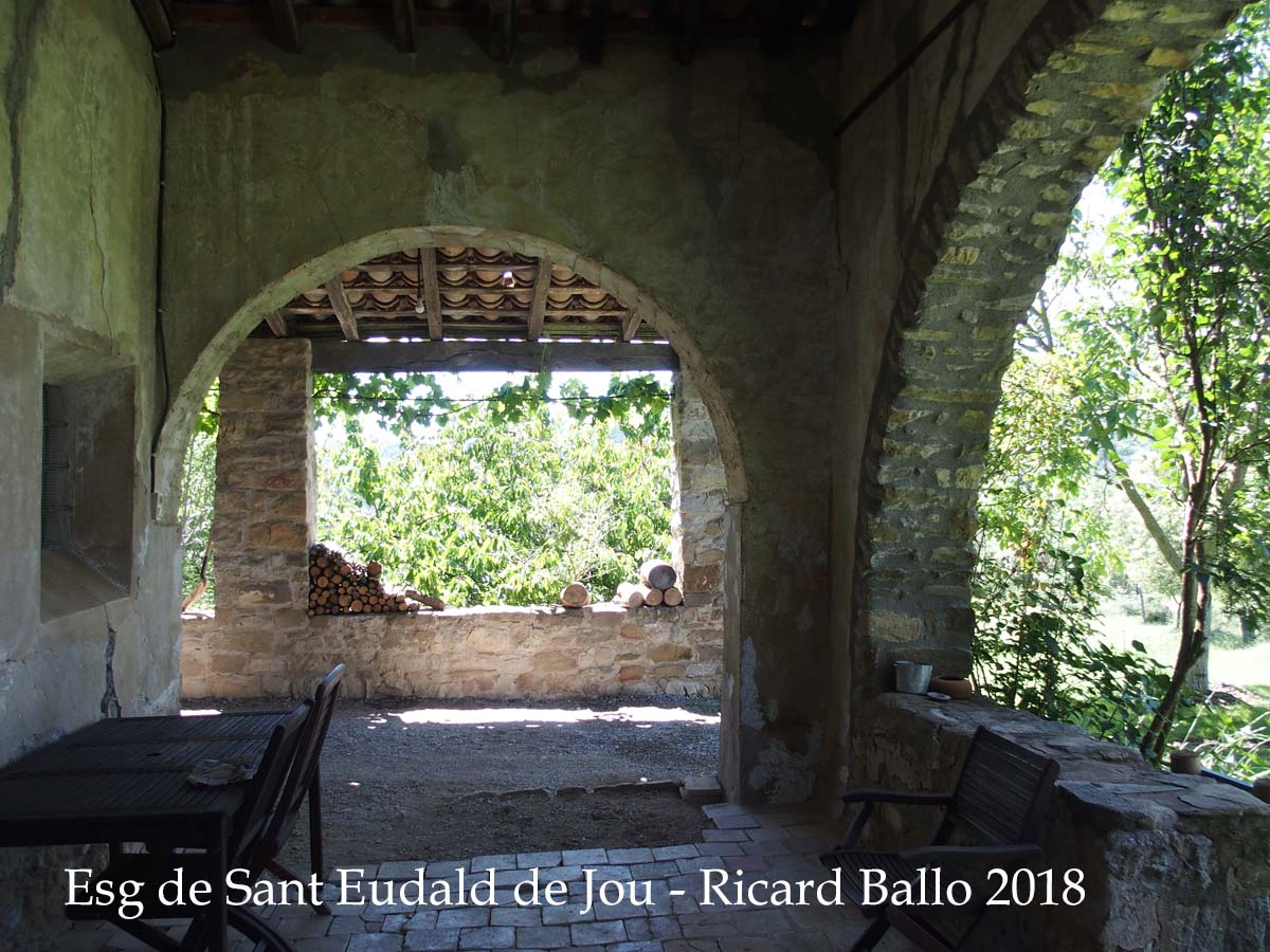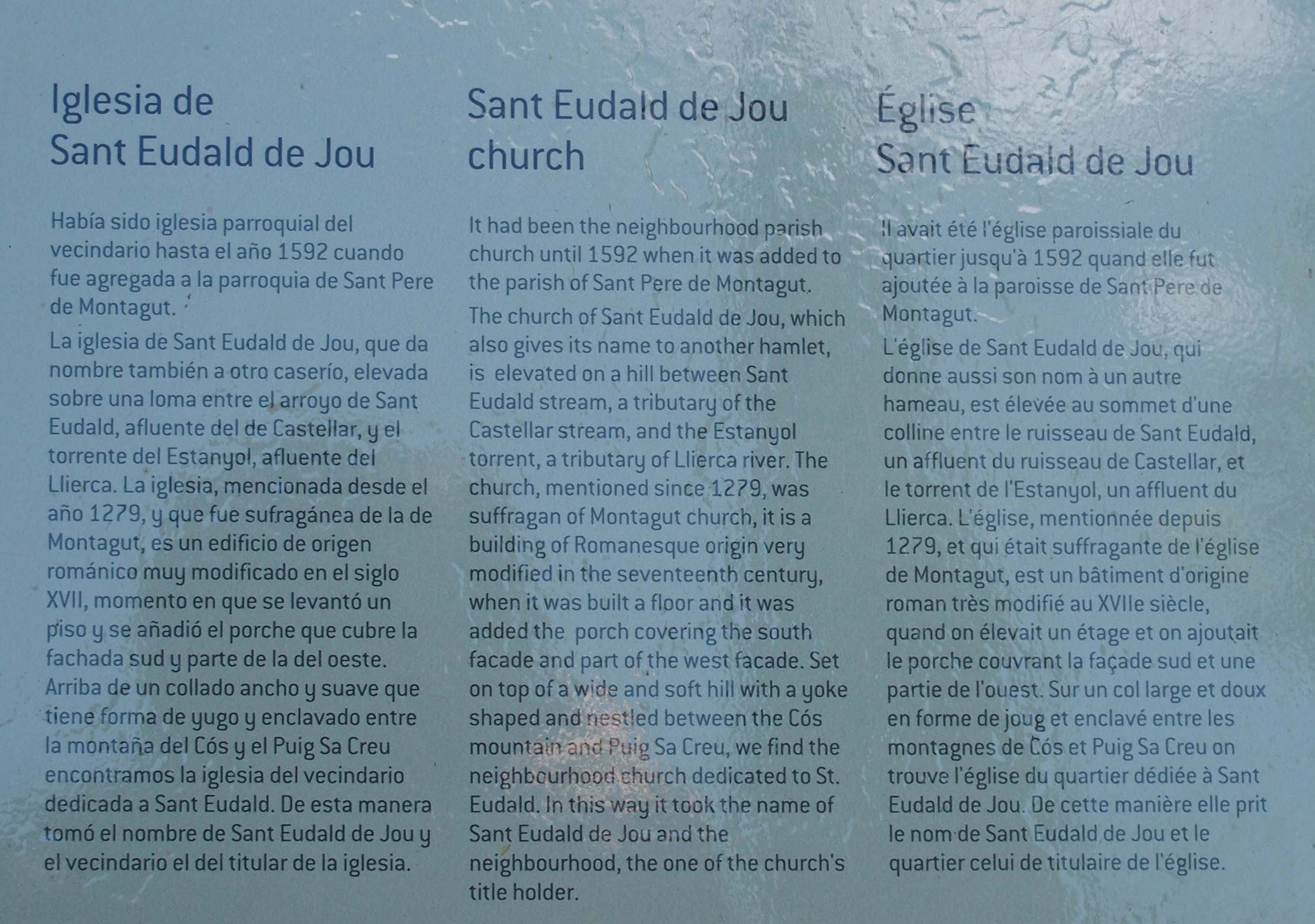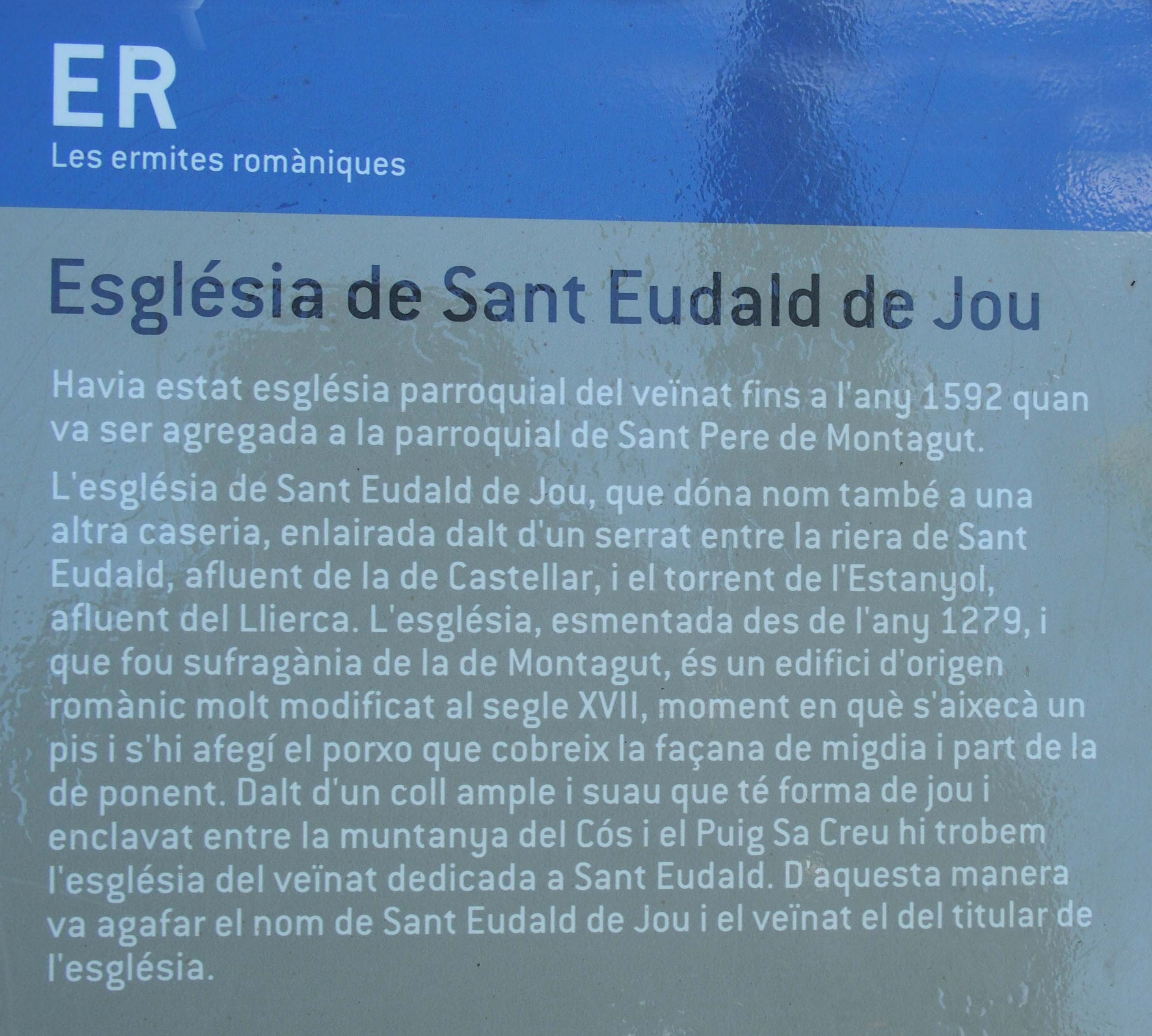 1 – A 42 14 19.7 02 33 22.2 trobem una desviació. Continuem per la dreta, abandonem la  carretera GIV-5221. Indicat: Sant Eudald de Jou.