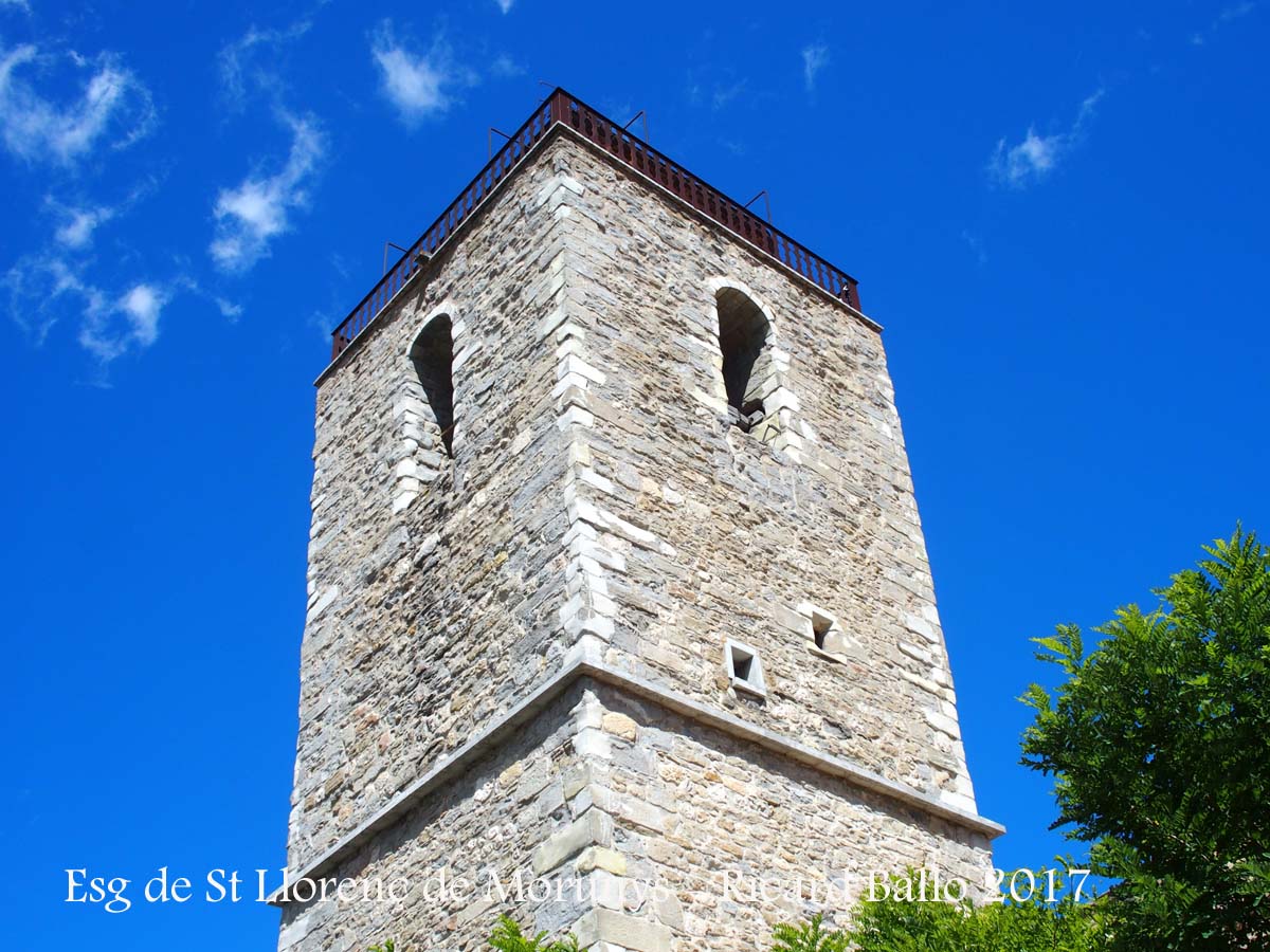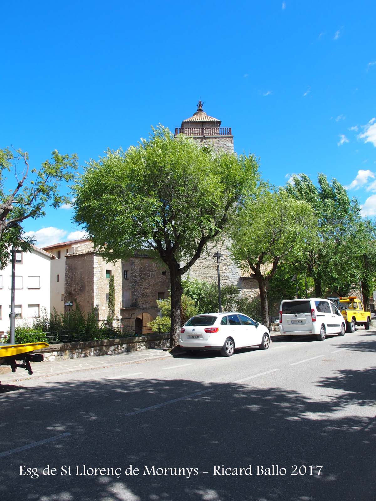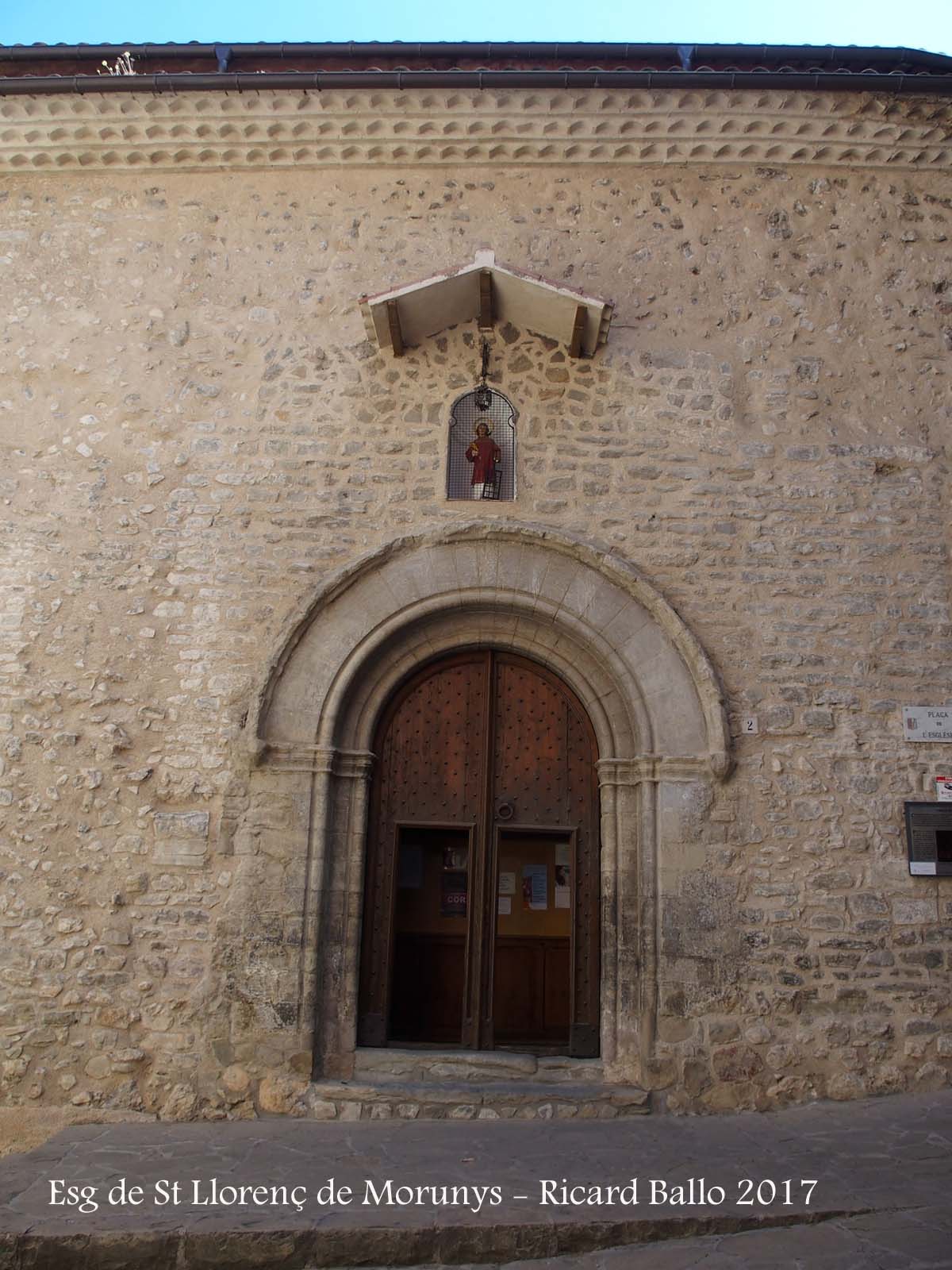 El temple de Sant Llorenç de Morunys en l'actualitat forma part de l'enteixinat d'edificacions properes al sector nord-oest del recinte emmurallat de la població de manera que els murs exteriors queden parcialment amagats.