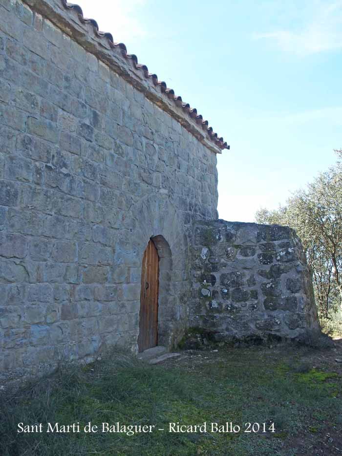 A llevant hi ha un absis semicircular, més petit que la nau, cobert amb una volta de quart d'esfera i amb una finestra d'arc de mig punt adovellat.