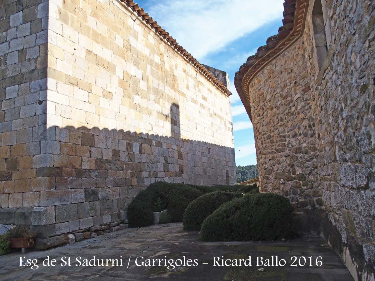 Al bell mig de les masies que formen el poble de Garrigoles trobem l'església parroquial de Sant Sadurní.