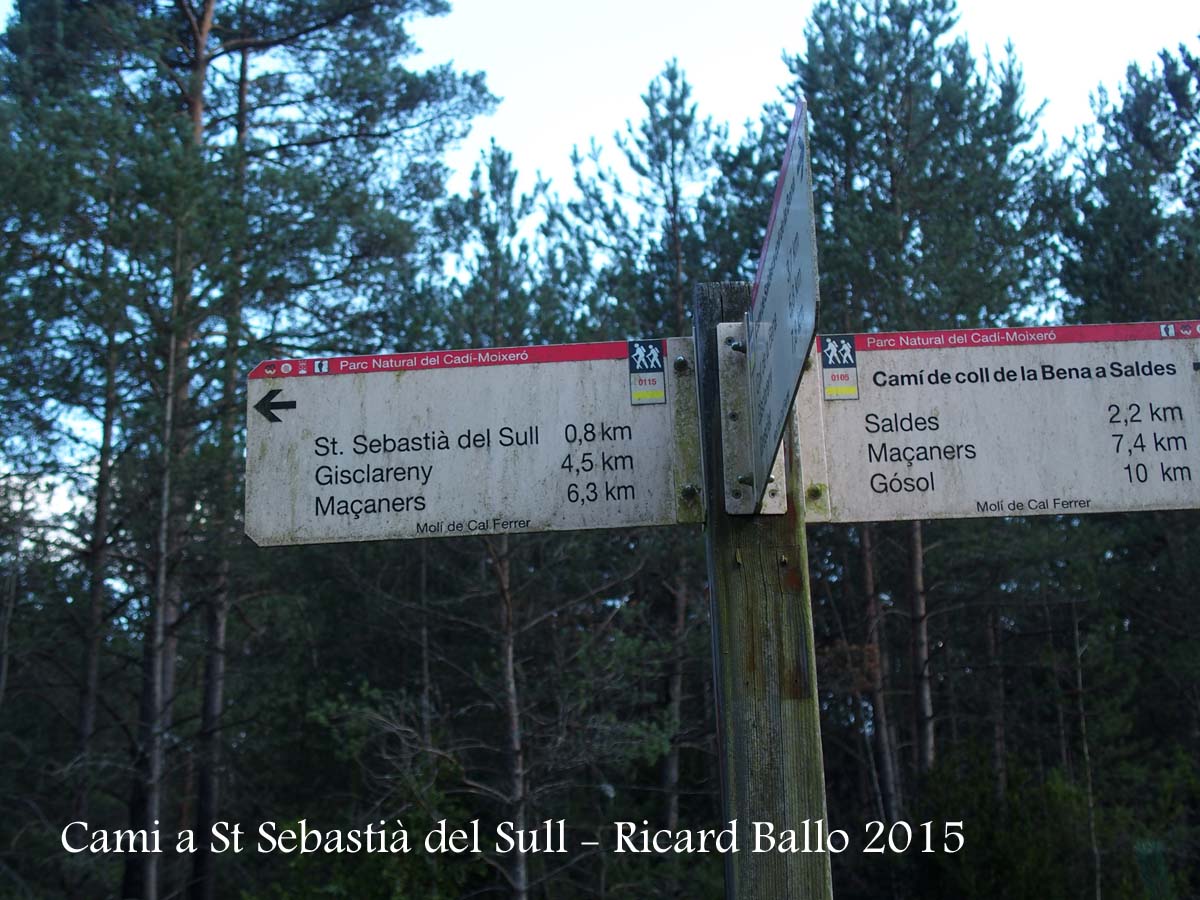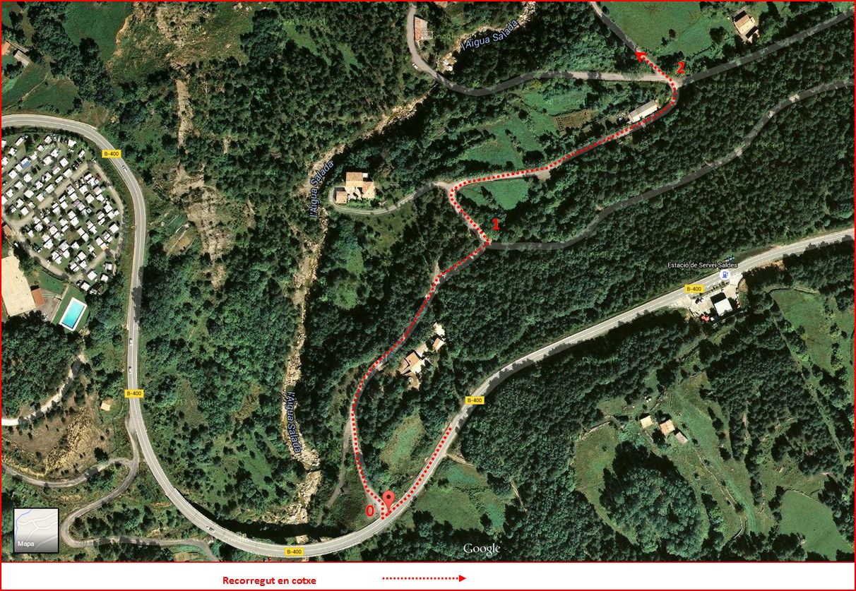 Procedents de Berga i circulant per la carretera C-16, anem en direcció a Bagà, sense arribar-hi. A l'alçada del PK 113 prenem una sortida a l'esquerra (42 13 03.8 01 52 08.6) , indicada per anar a Saldes. Entrem a la carretera B-400 (Guardiola de Berguedà – Saldes – Gósol).