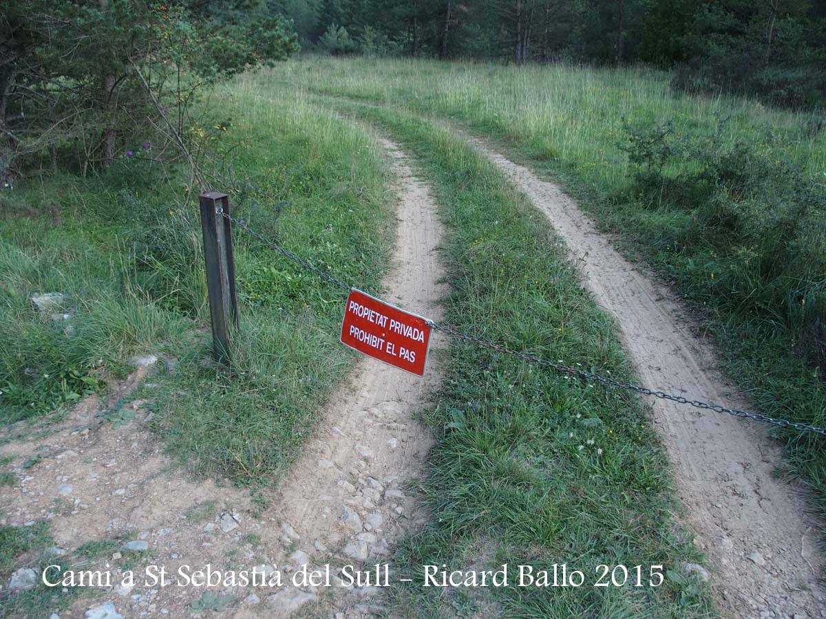 Hi ha dos camins: un d'ample, a la dreta, on també hi ha una cadena i un cartell que ens indiquen no passar-hi.