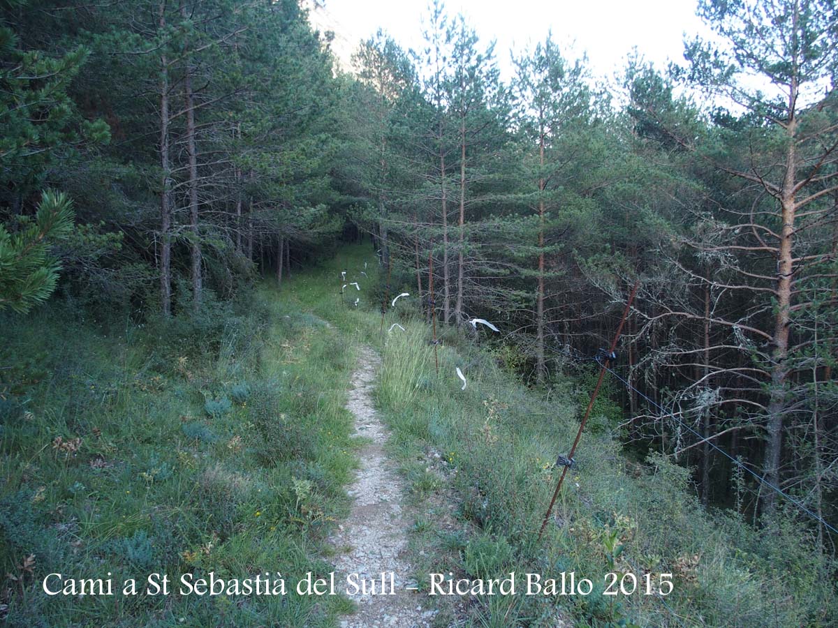 A l’esquerra hi ha l’inici d’un senderol amb una indicació. Aquest és el camí bo.