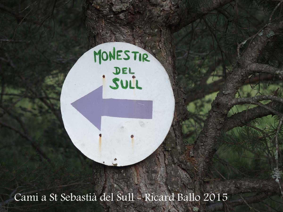 on a l'altra banda ja hi veureu un petit cartell de senderisme, indicant la direcció a seguir.