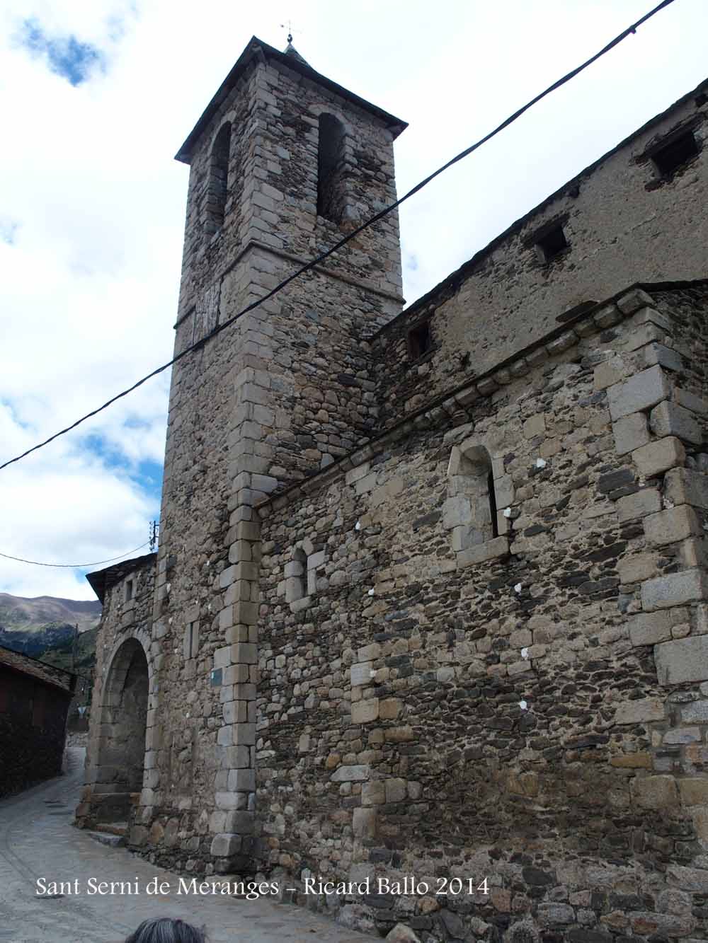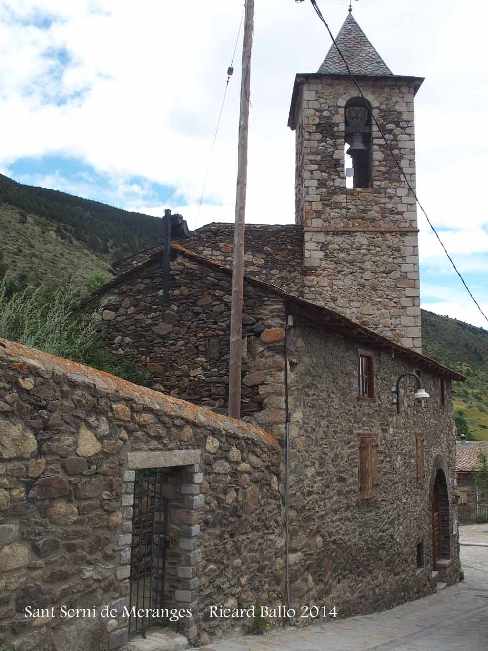 Sant Serni es troba al bell mig de la població de Meranges, a 1.540 m d'altitud.