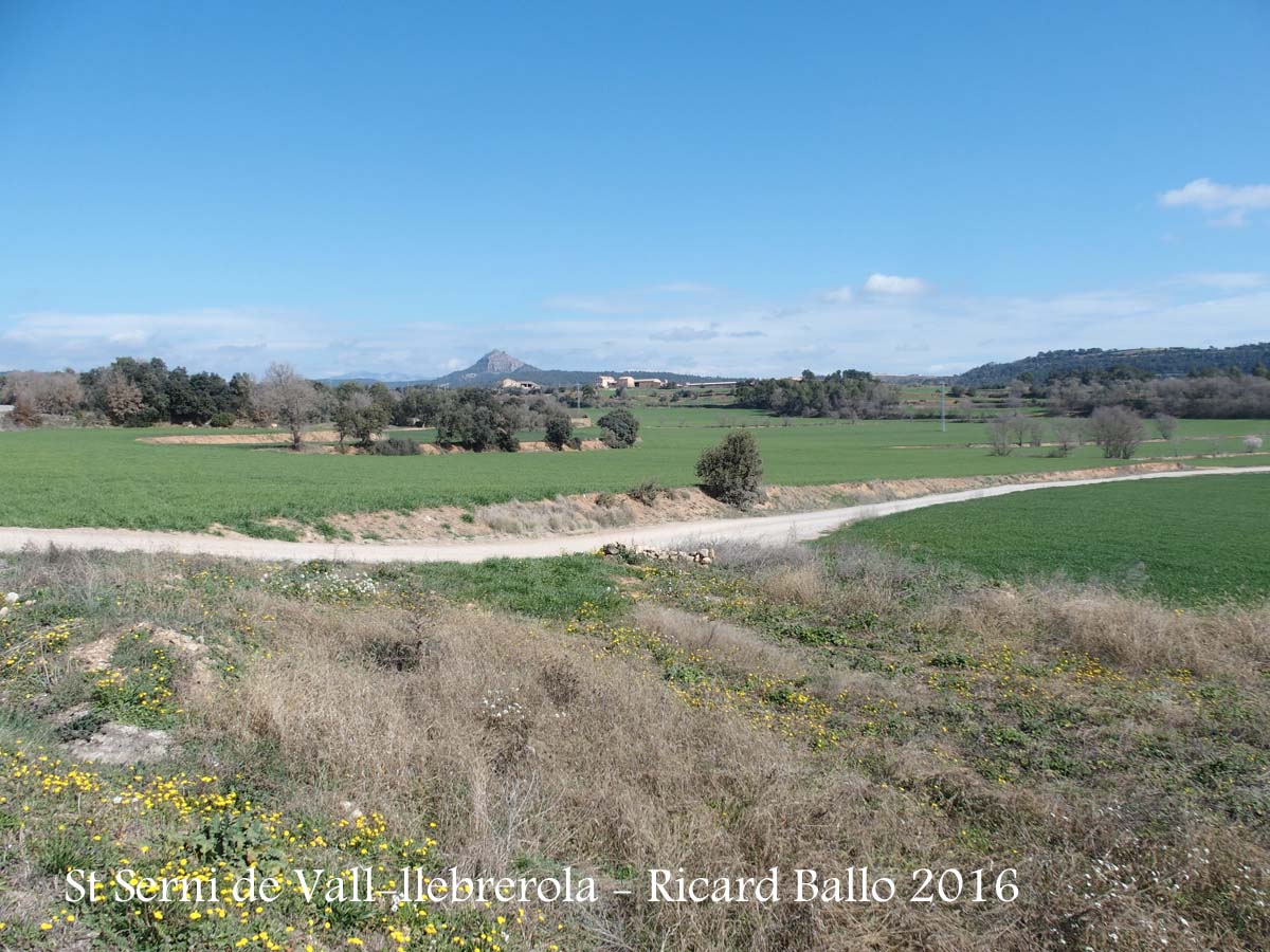 - Doncs, si, també des d'aquest paratge de Vall-llebrerola, és visible, al fons, la muntanya de Montmagastre (762 metres d'altitud – Castell de Montmagastre).