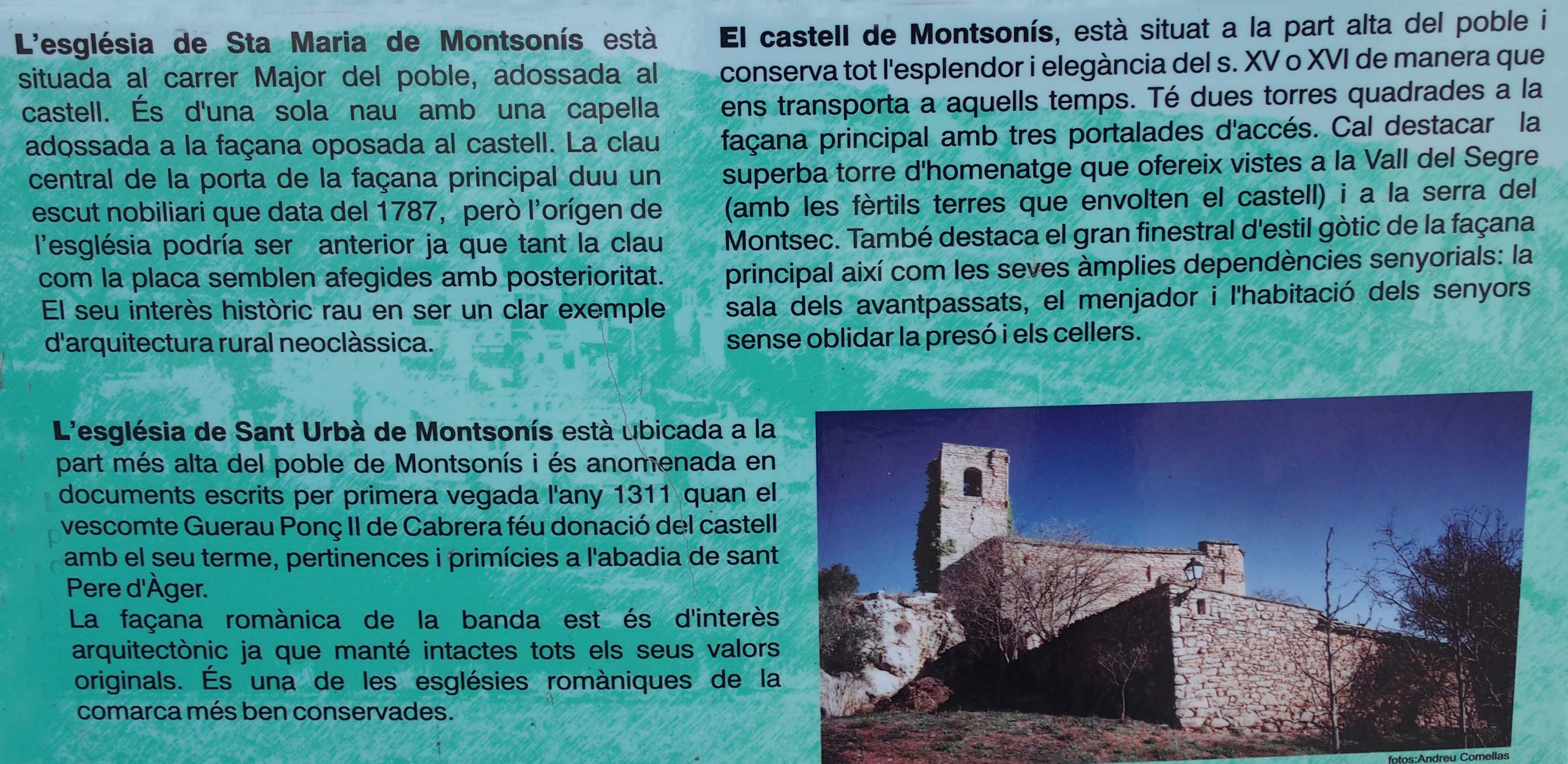 Altres noms: Església de Sant Urbà de Montsonís / Sant Pere de Montsonís / Antiga església parroquial de Santa Maria - (Patrimoni.Gencat).