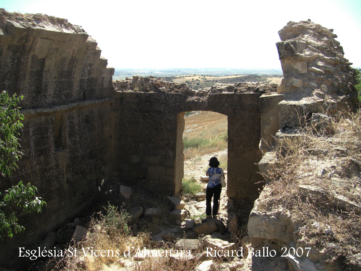 L'església de Sant Vicenç màrtir fou en molta part acabada de desmantellar quan, a la guerra de 1936-1939, els soldats arrencaren la quasi totalitat dels carreus que revestien el temple, per a l'obra militar que els convenia fer a la mateixa alçada.”