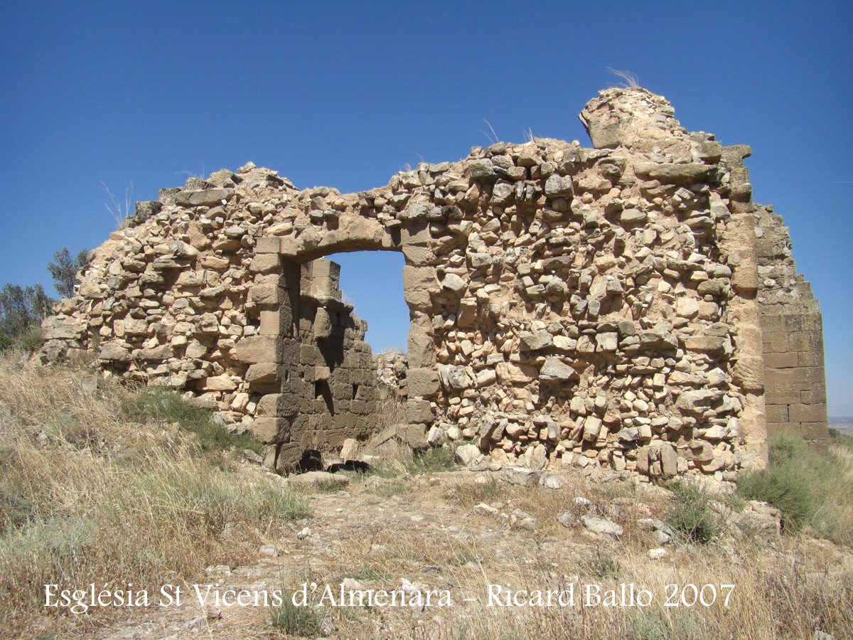 A uns 50 m. del Pilar d'Almenara, hi ha un temple dedicat a Sant Vicenç màrtir; en l'actualitat sense ús, esbaldregat i en ruïna.