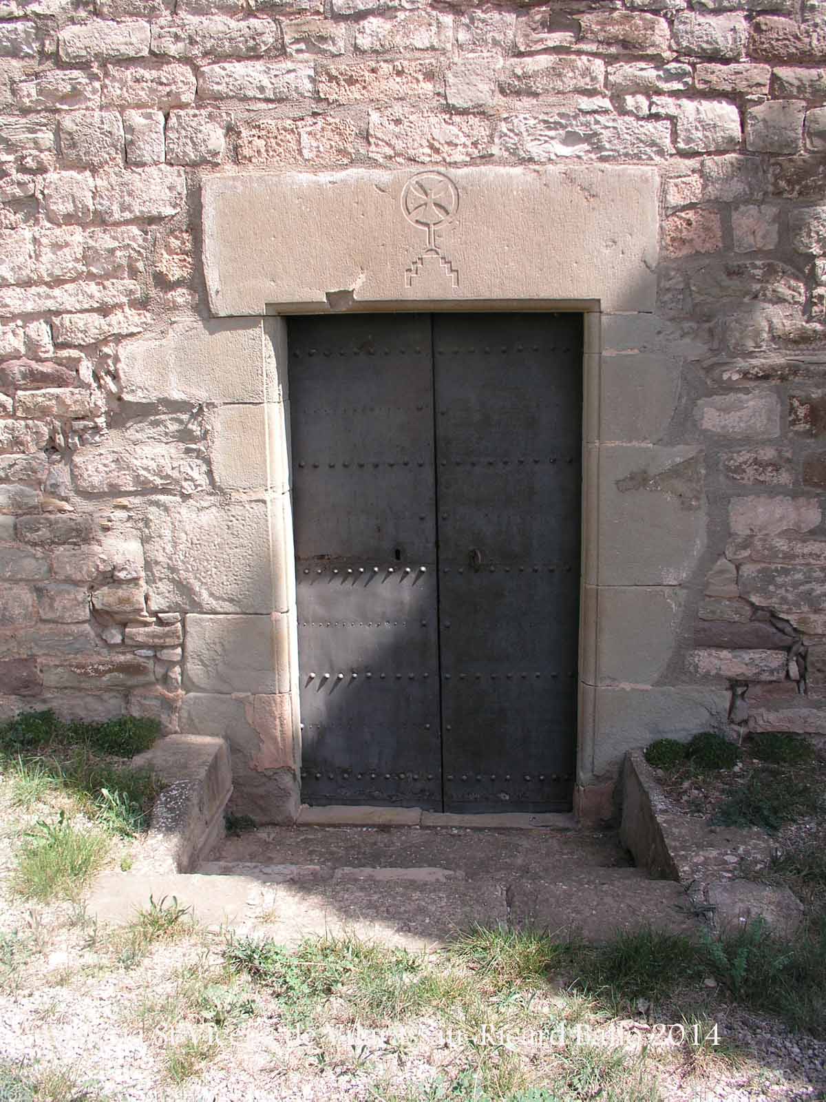 L'accés a l'església es fa pel cantó de ponent i la porta és moderna.