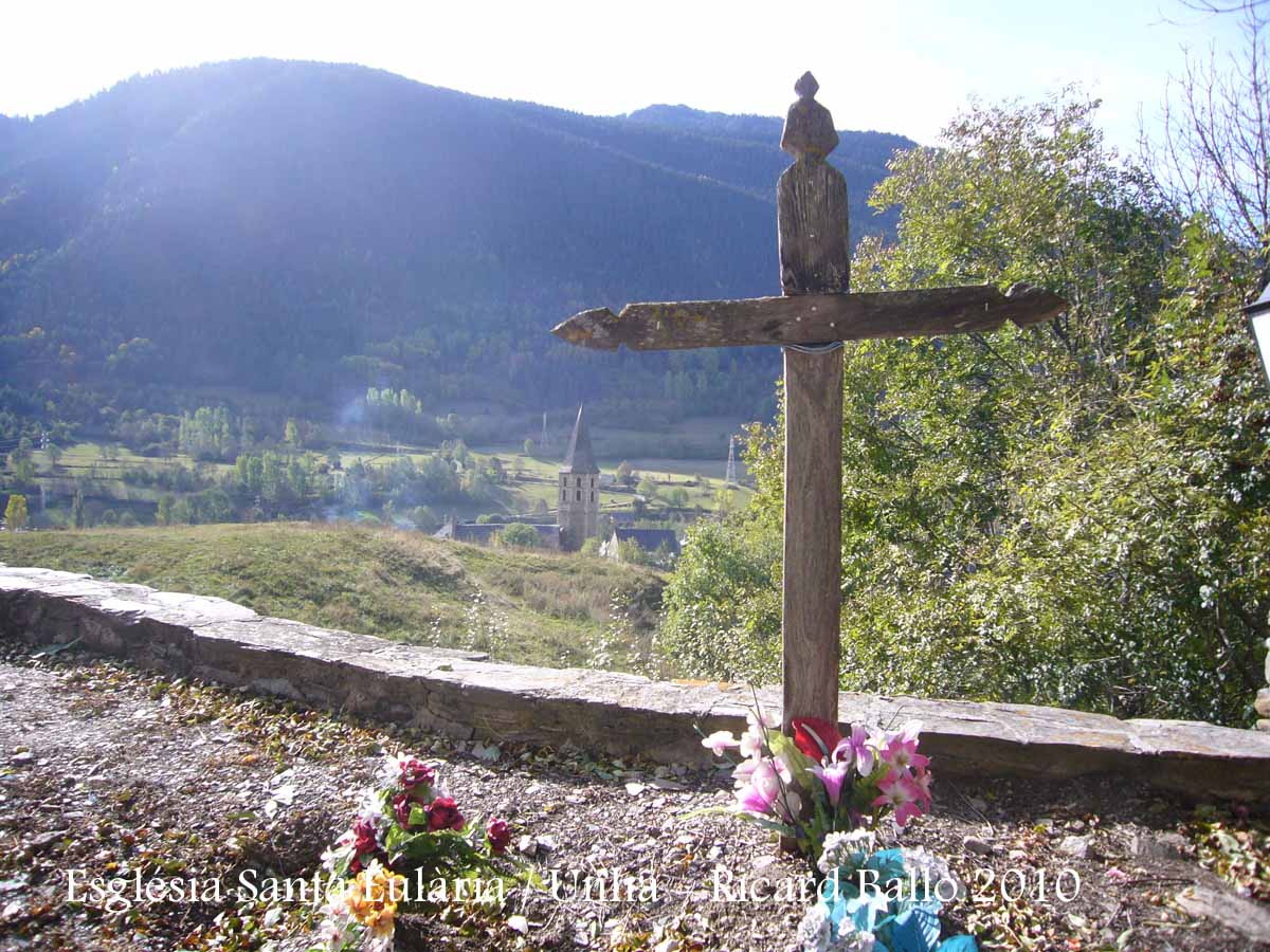 A ponent s'alça el campanar, exempt, bastit el 1775, de planta quadrada que esdevé octogonal, té un curiós acabament, de tipus oriental, molt distint dels de la resta de la Val.