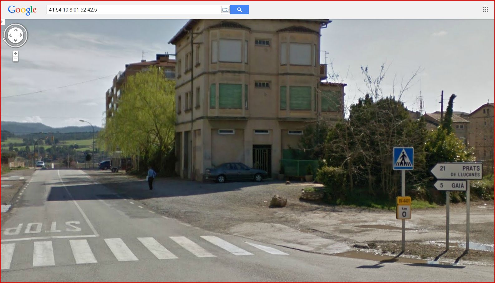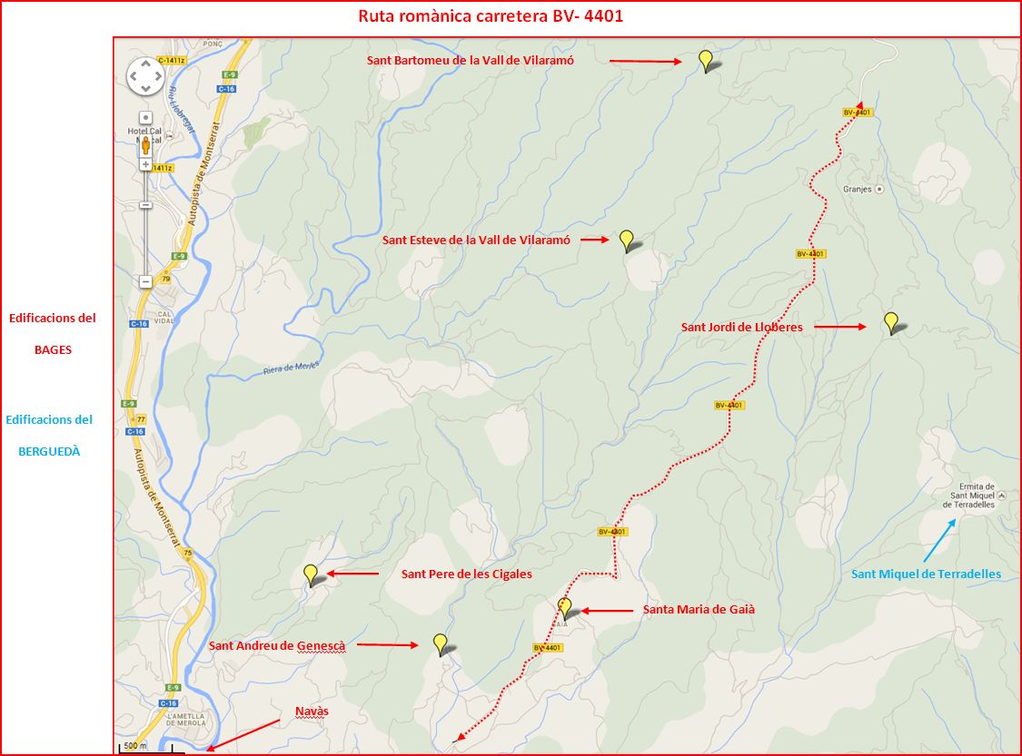 Abandonarem aquesta carretera per una sortida indicada, a mà dreta, situada en un lloc (41 55 01.4 01 55 29.6) a tocar de la fita del PK nº 5.