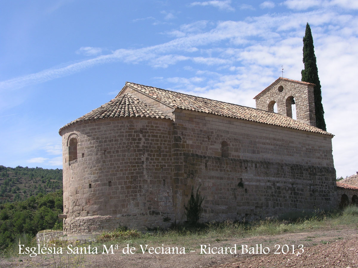 L’església de Santa Maria ha estat l’església parroquial de Veciana des dels seus inicis. Es troba bastant distant del nucli de població (fet poc habitual), situat a l’altre costat de la Riera de Veciana que corre pel fons de la vall. Santa Maria de Veciana està construïda sobre un replà, a mitja pendent del vessant muntanyós.