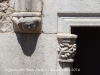 L'entrada és a l'est, amb una porta renaixentista molt fina, de llinda plana i guardapols que clou en caparrons d'àngels, els brancals són de columnetes amb base i capitell de motius florals.