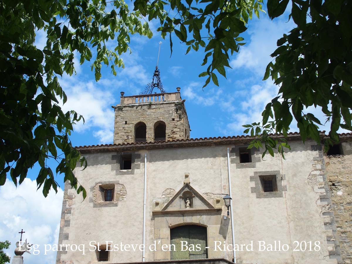 L'església de Sant Esteve centra el poble del mateix nom, situat en un vessant de la muntanya de Murrià, sobre la vall d'en Bas.