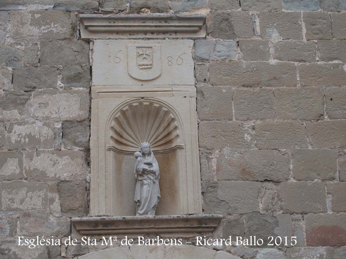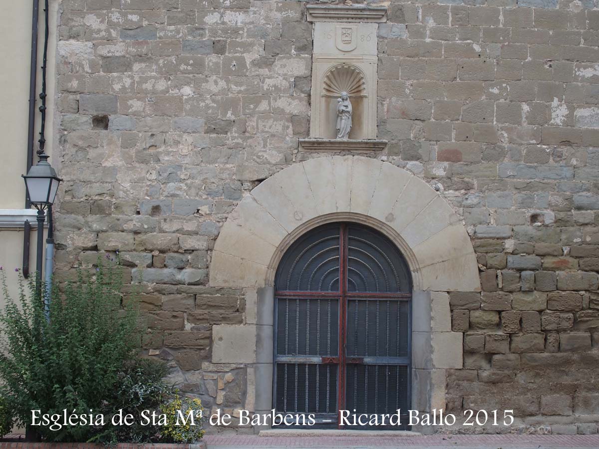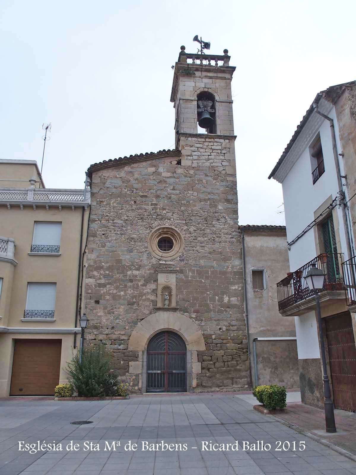 EL 1600 el comanador de l'Ordre de l'Hospital va realitzar una visita a la casa-castell de Barbens (d'aquesta visita resta document de la comanda). Miquel de Correlles informa sobre l'antiga església: era coberta ab bòveda de pedra i guix y aprés taulada(...) En dita església y ha un portal gran ab sas portas bonas y fortas per lo qual si entra y sobre dit portal y ha un campanar de pedra ab tres campanes(...) y ha l'altar major dedicat a nostra Senyora, la capella de Sant Joan i Sant Bonaventura amb un retaule de relleu dorat nou". L'any 1989 es va restaurar la teulada a causa d'una esquerda detectada en la part més moderna del temple.”