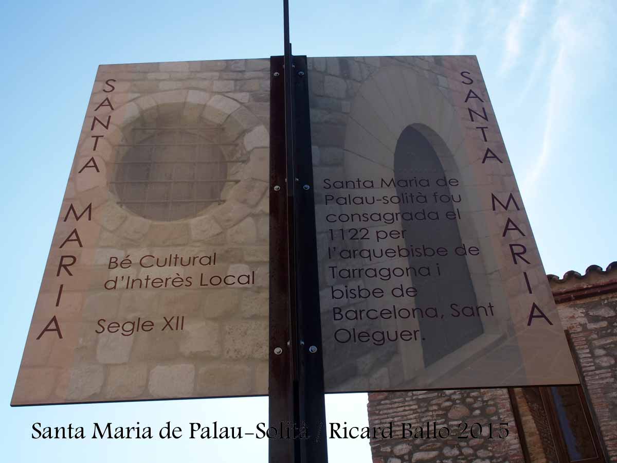Segons el pergamí que es troba a l'Arxiu de la Corona d'Aragó, la consagració del temple de Santa María de Palau Solitar fou el 14 de novembre de 1122. La ceremònia de consagració la va realitzar l'arquebisbe de Tarragona i bisbe de Barcelona, Sant Oleguer.