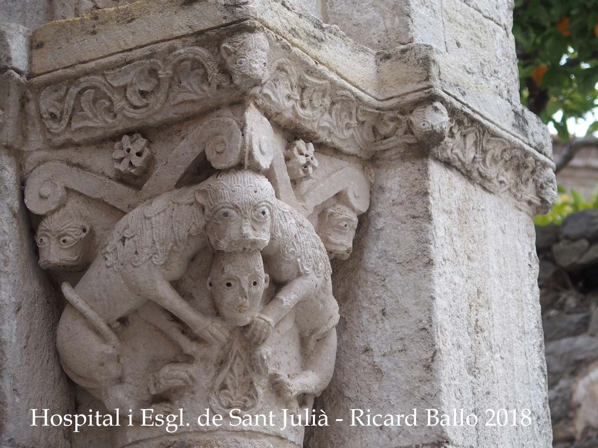 Estat: Bo. “Aquesta singular construcció, de la qual només ens ha arribat la façana, de les darreries del segle XII, fou l'església de l'antic hospital de la vila” – Vikipedia.