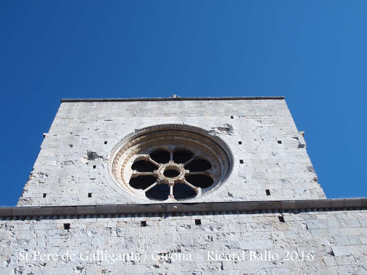 Al frontis dels arcs superiors de la rosassa hi ha la següent inscripció: OMNES COGNOSCAM I PETRUM FECISSE FENESTRAM ("tothom conegui que Pere ha fet la finestra").