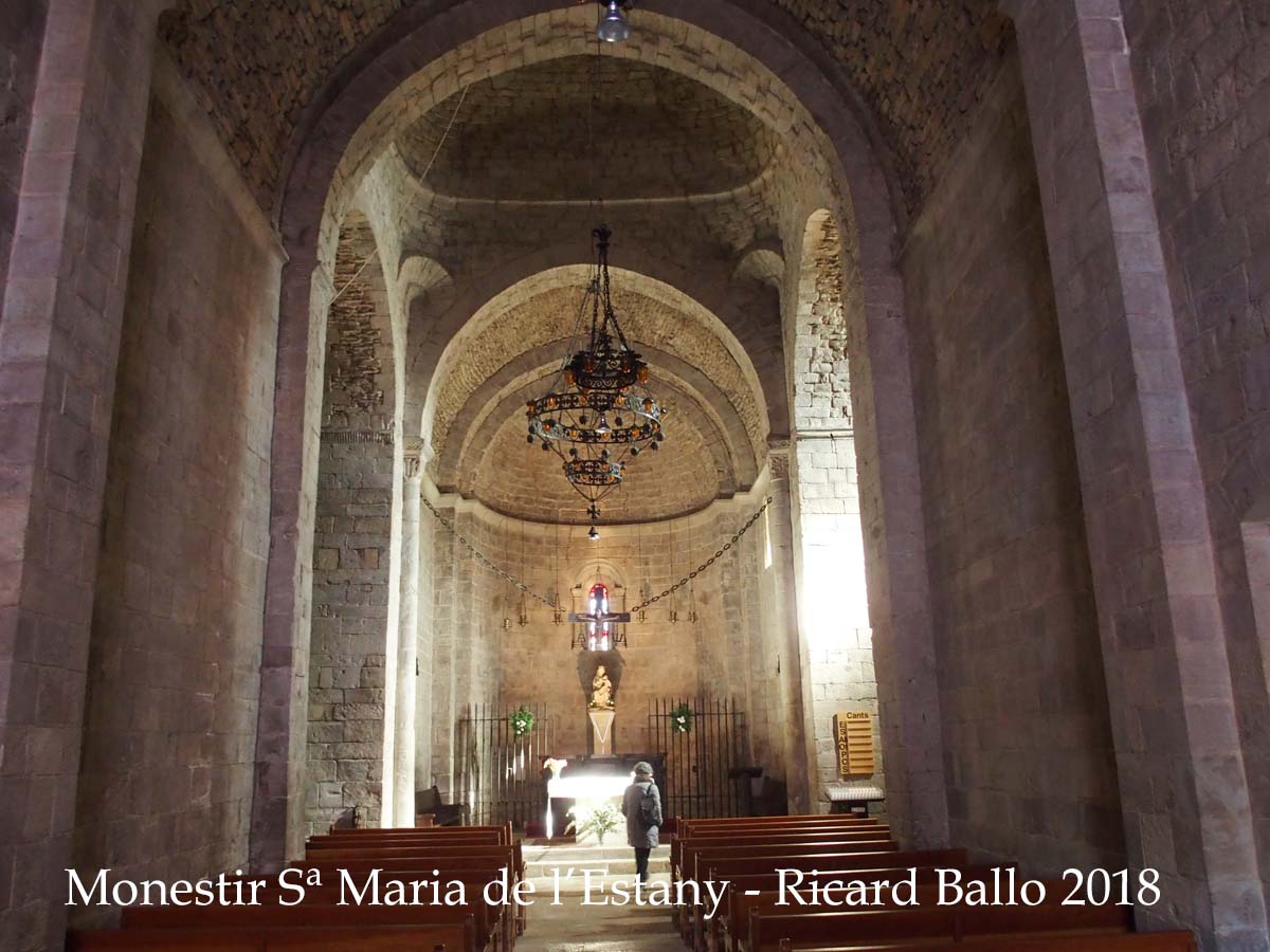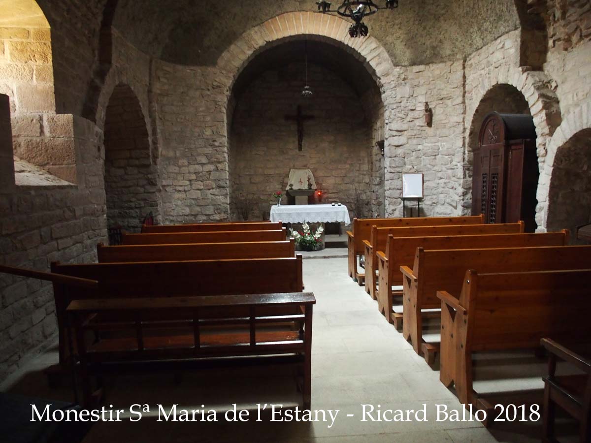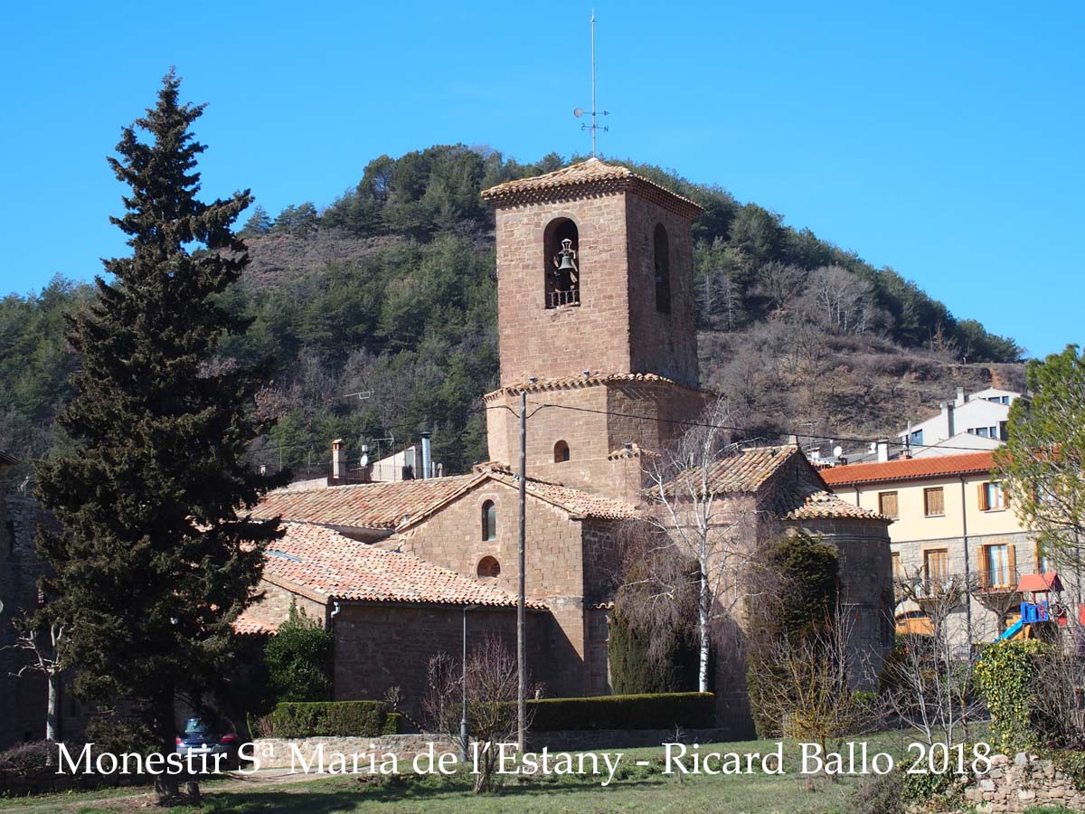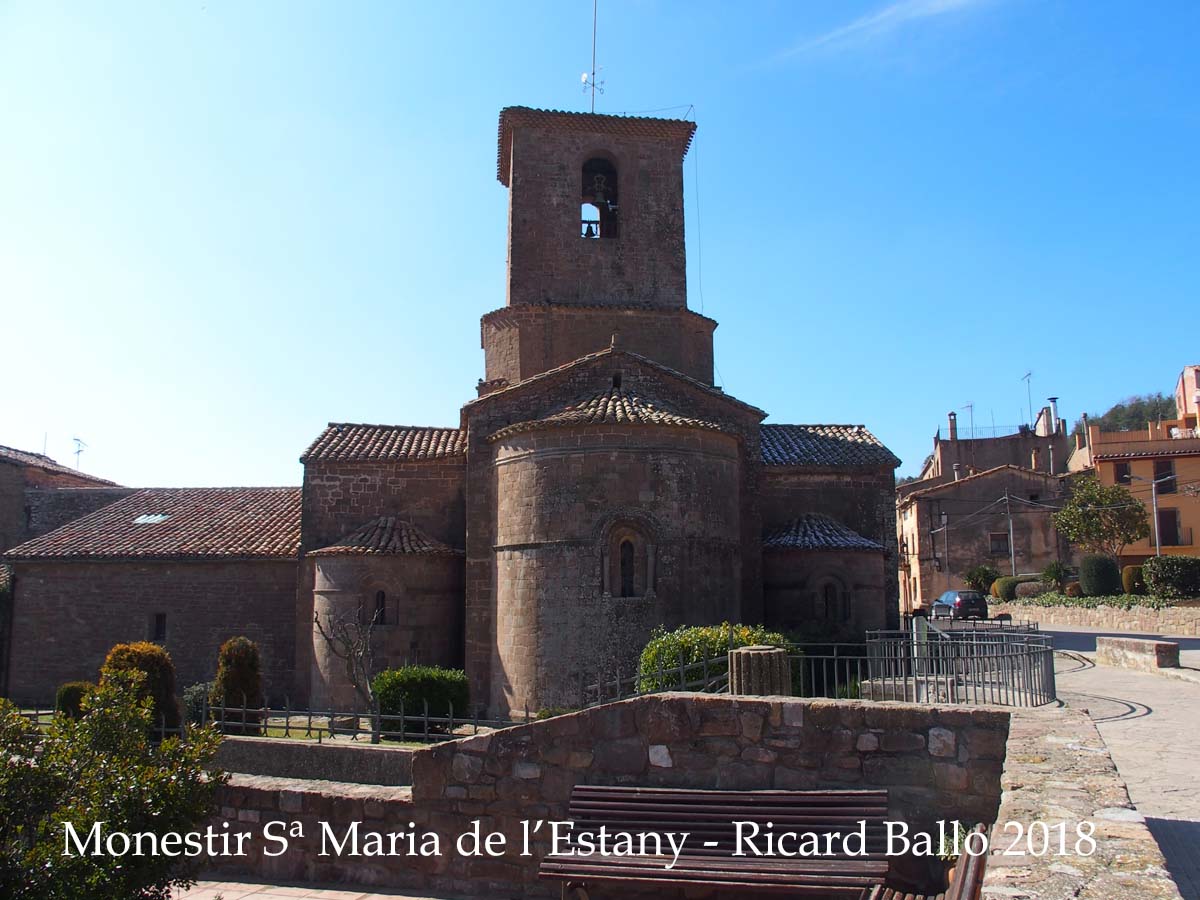 L'antic monestir canonical de Santa Maria centra la població de l'Estany, situada en una vall del Moianès que havia estat segles enrera un estanyol o embassament d'aigua, dessecat el 1554 gràcies a una mina feta construir pel darrer abat del momestir i que, allargada el 1735, encara evita que l'aigua s'entolli en el sòl argilós de la vall.