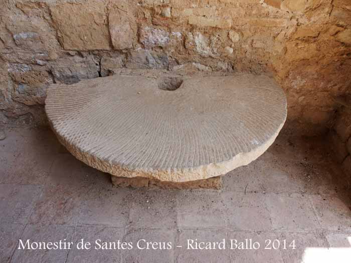 Altres elements conservats i repartits per la dependència són unes enormes piques de pedra - les aigüeres -, una gran taula de treball, unes moles, un fogó de pedra i un molinet.