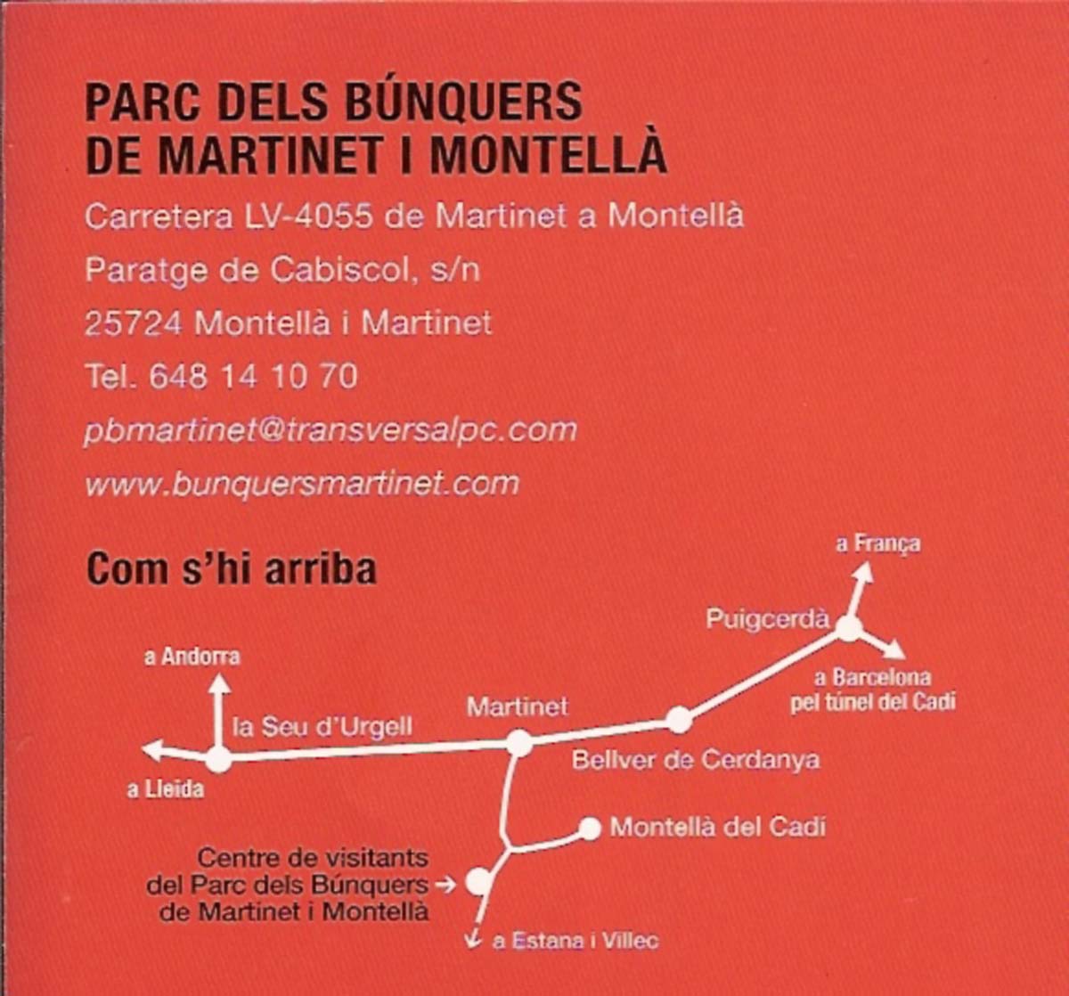 “ El Parc dels Búnquers de Montellà i Martinet és una zona de Montellà i Martinet on es construïren una sèrie de búnquers per construir una línia fortificada al llarg dels Pirineus, anomenada Línia Pirineus, des del cap de Creus fins al País Basc.